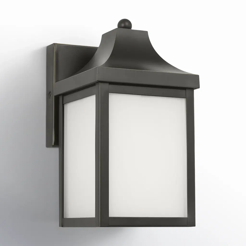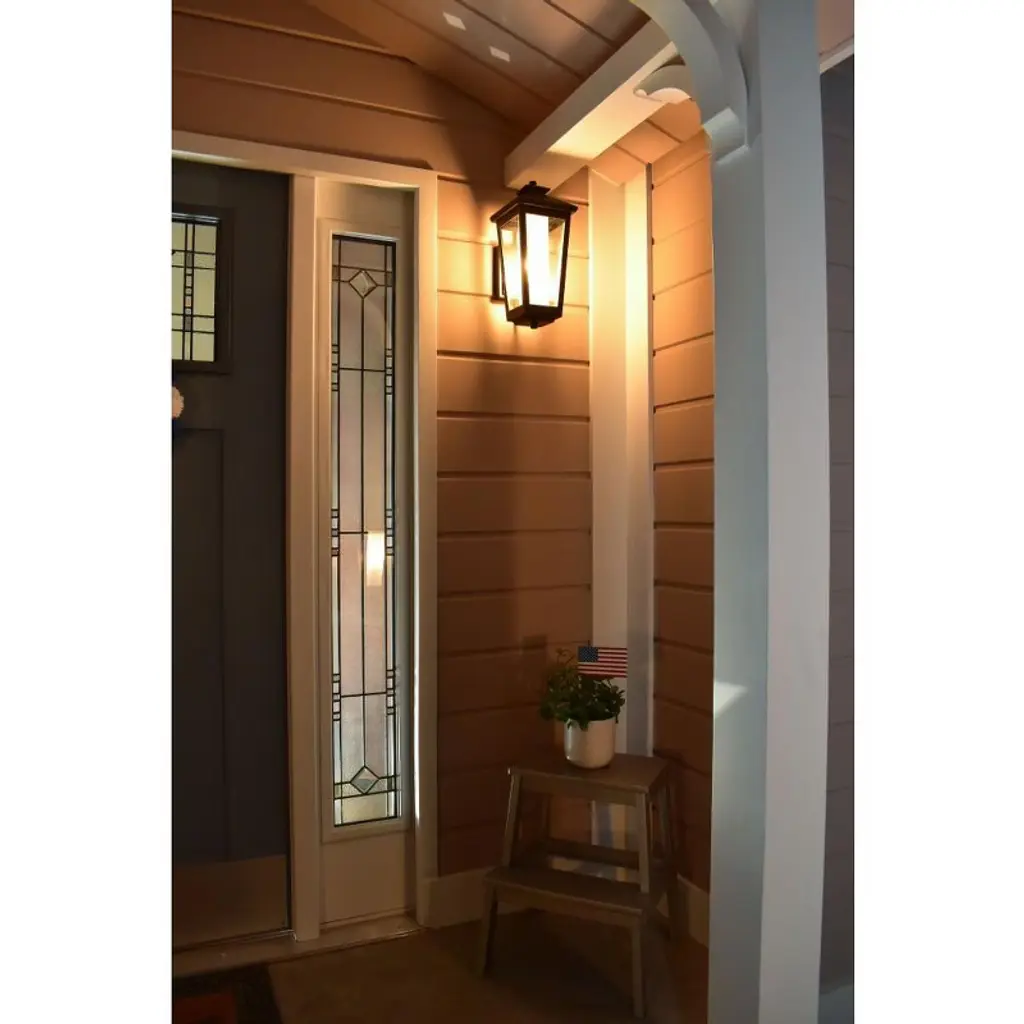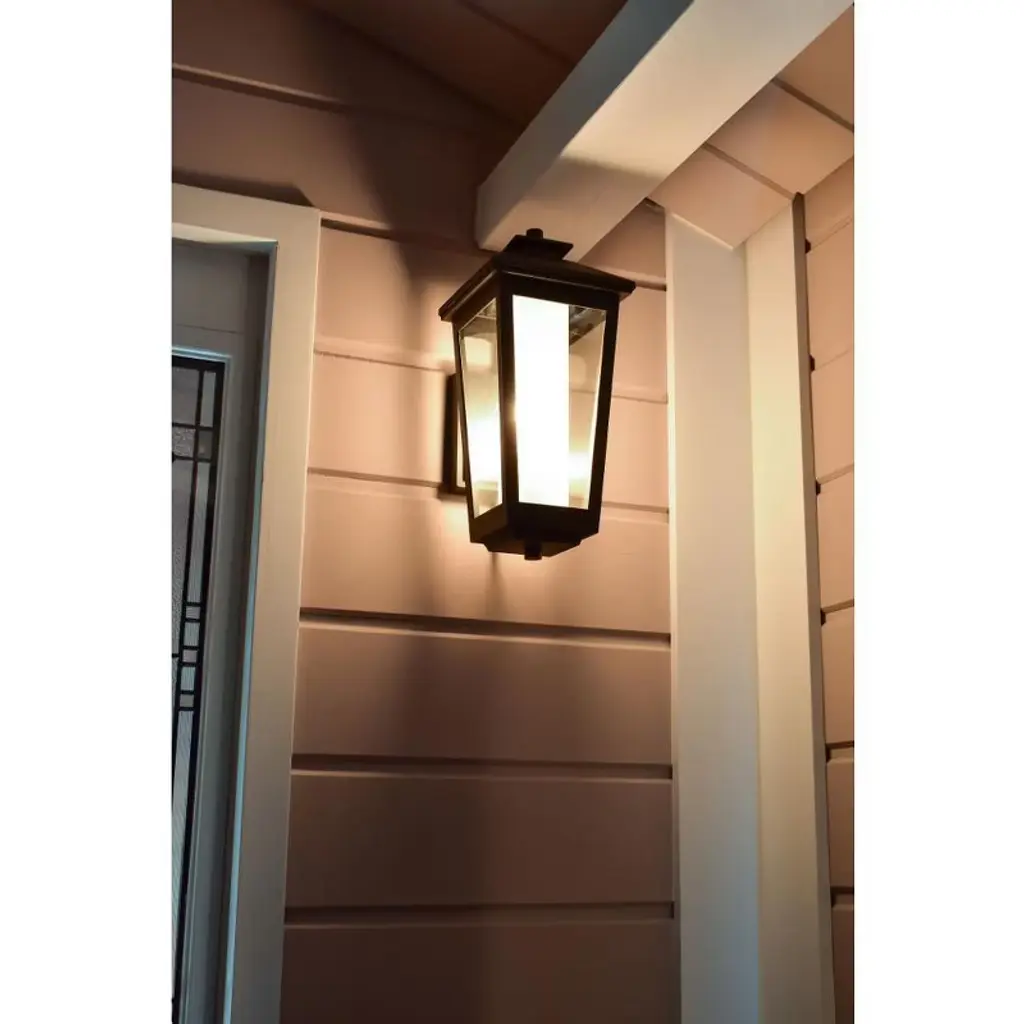 A slender profile traditional frame finished in Artesian Bronze with Clear glass outer pane with a Frost interior cylinder diffuser. Upscale styling at price that won't kill your budget. Back Plate Height: 8.75 Back Plate Width: 4.75 Dimmable: Yes Shade Included: Yes Material: Glass, Finish Color: Artesian Bronze, Width: 9", Height: 19.5", Length: 10.25", Depth: 10.25", Height From Outlet Box: 11", Backplate Width: 4.75", Backplate Length: 8.75", Lamping Type: Incandescent, Number Of Bulbs: 1, Wattage: 60 Watts, Dimmable: Yes, Moisture Rating: Wet Rated