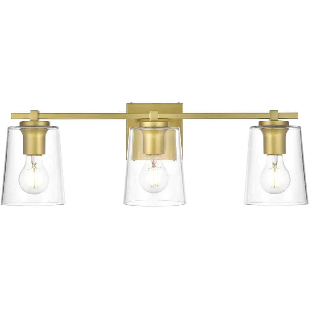 Suspended by three pin connections, the sharp silhouette of Ava's angular glass provides a designer look to enhance your bathroom design. Using Clear glass and a variety of complementary metal finishes the sconces are available in Black, Polished Chrome, or Natural Aged Brass allowing it to pair well with most interior color palettes.
