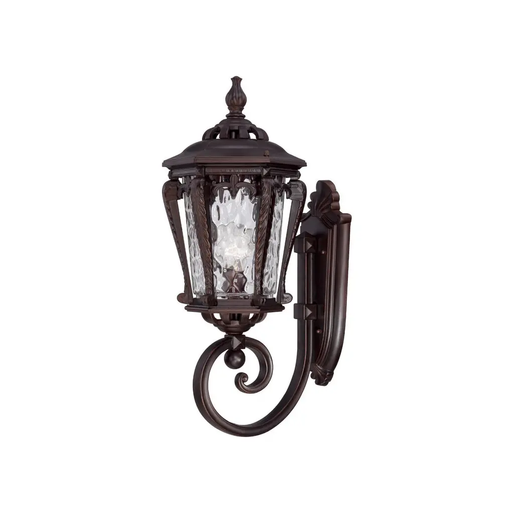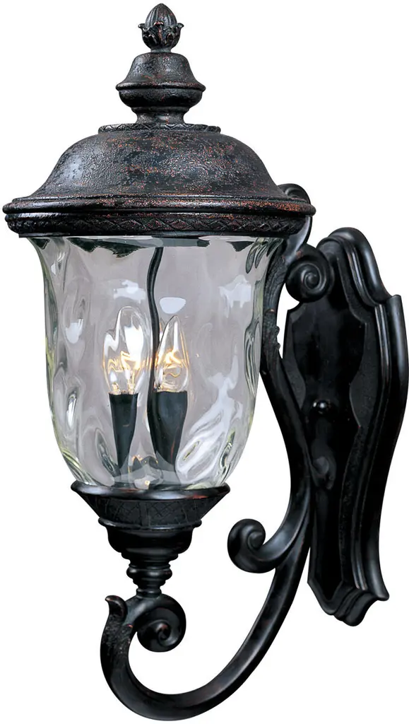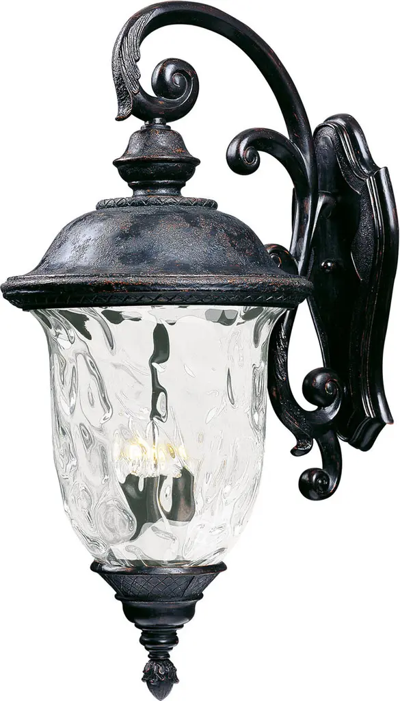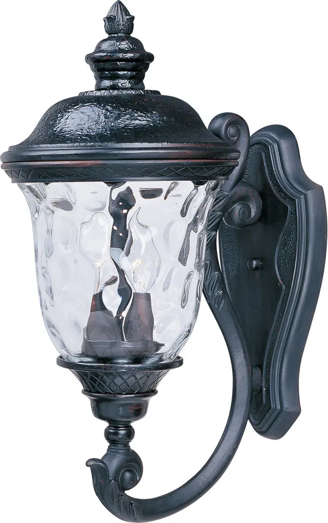 Maxim Lighting's Carriage House VX Collection is made with Vivex, a material twice the strength of resin, is non-corrosive, UV resistant and backed with a 5-Year Limited Warranty. Carriage House VX features our Oriental Bronze finish and Water Glass. Back Plate Height: 15.50 Back Plate Width: 7.00 Dimmable: Yes Shade Included: Yes