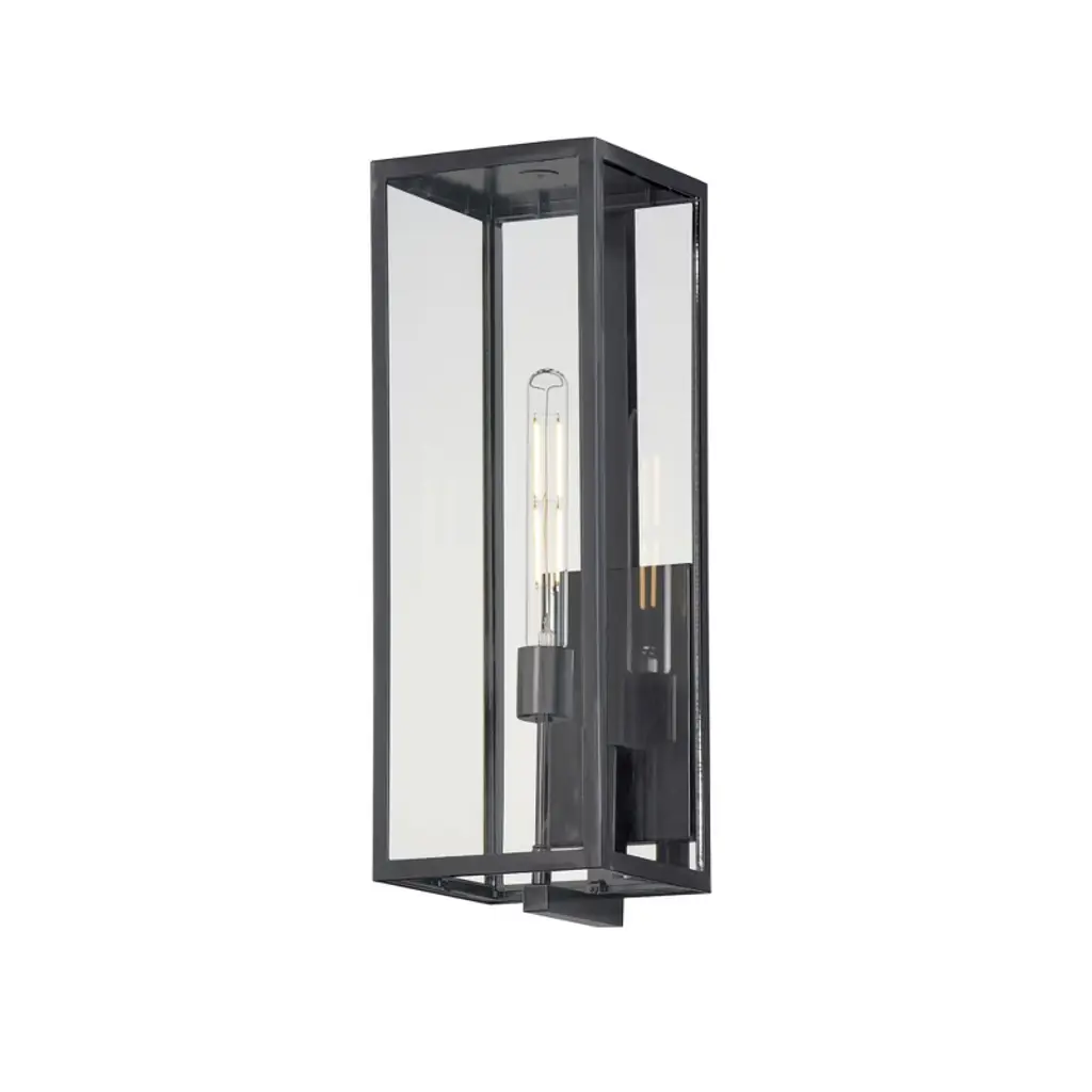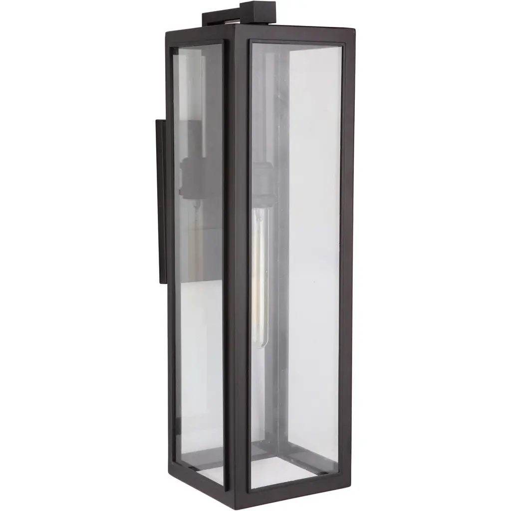 An elongated rectangular shaped design that is both minimalist and industrial. Die cast frames of Dark Bronze support Clear glass panels that provide an unobstructed view of the lantern's interior. Customize with your choice of lamps from vintage to tubular. Mounting Direction: Down Back Plate Height: 8.00 Back Plate Width: 4.75 Dimmable: Yes Shade Included: Yes