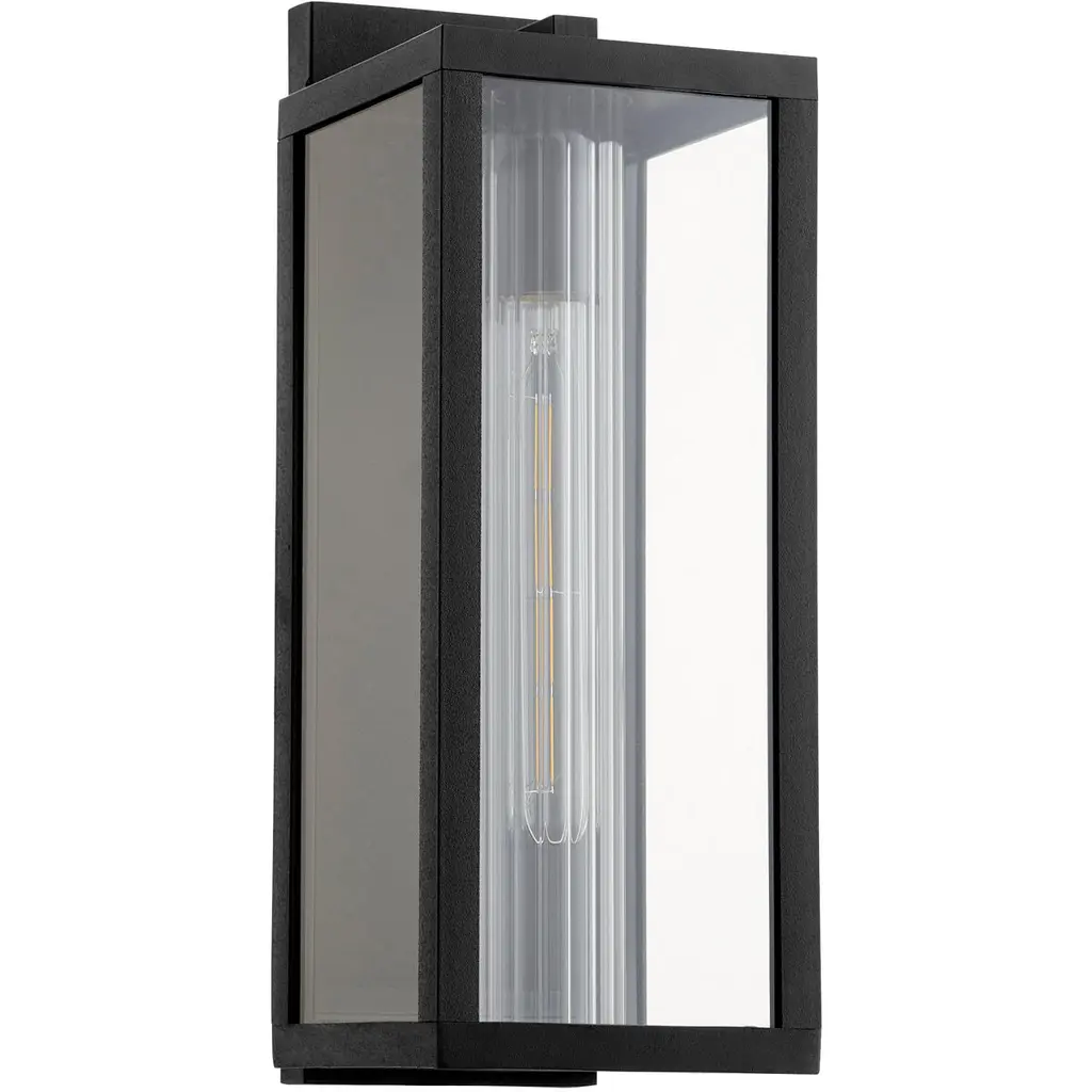 An elongated rectangular shaped design that is both minimalist and industrial. Die cast frames of Dark Bronze support Clear glass panels that provide an unobstructed view of the lantern's interior. Customize with your choice of lamps from vintage to tubular. Material: Glass, Finish Color: Dark Bronze, Width: 7", Height: 21.5", Depth: 8.5", Height From Outlet Box: 14.25", Backplate Width: 4.75", Backplate Length: 8", Lamping Type: Incandescent, Number Of Bulbs: 1, Wattage: 60 Watts, Moisture Rating: Wet Rated