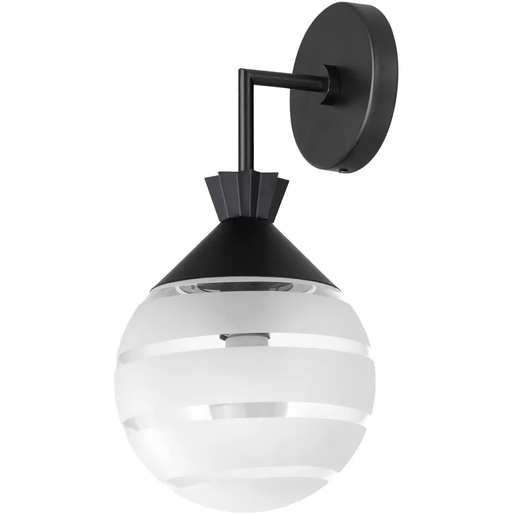 A playful grouping of globe and tapered cylinder glass shades feature a distinctive striped pattern as they are held from crown-like fonts. Spiritedly vintage and excitingly modern, this fashionable series of outdoor rated sconces and pendants connects styles generationally and with renewed imagination. The wide stripes of etched glass are separated with thinner clear glass lines softening the light source in a unique and approachable pattern. The crown tops feature sharply pleated angles that recall the iconic pineapple lanterns, but has updated them with an updated appeal. Sophisticated and full of energy, this design evokes the timeless spirit in Americana tastefully.