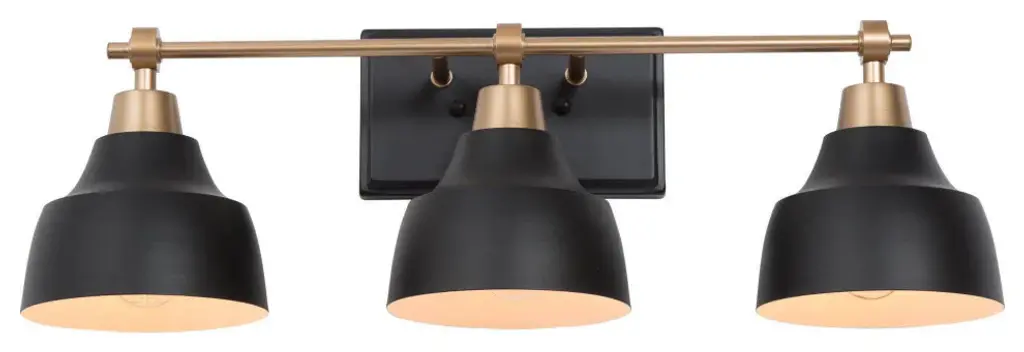 A classic mid-century look, the Lovell collection features two sizes of sputnik chandeliers and streamlined sconces perfect for bath vanity applications. Available in a Black/Satin Brass finish combination. Light bulbs nest inside the metal cones to become an element of the design. Mounting Direction: Up/Down Back Plate Height: 0.75 Back Plate Width: 4.75 Dimmable: Yes