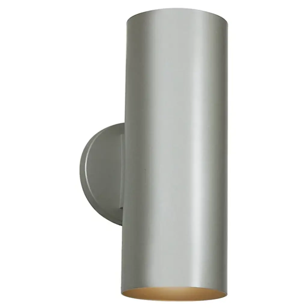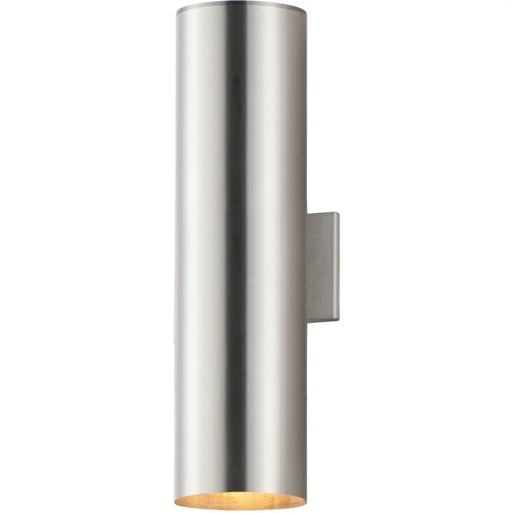 Classic cylinder up and down lights provide directional light without glare. Available in 3 sizes with both incandescent and LED versions. Available in Architectural Bronze, Aluminum, or Black. Mounting Direction: Up/Down Back Plate Height: 5.00 Back Plate Width: 4.50 Material: Aluminum, Finish Color: Brushed Aluminum, Width: 5", Height: 22", Depth: 6.25", Height From Outlet Box: 11", Backplate Width: 4.5", Backplate Length: 5", Lamping Type: Incandescent, Number Of Bulbs: 2, Wattage: 40 Watts, Dimmable: No, Moisture Rating: Wet Rated