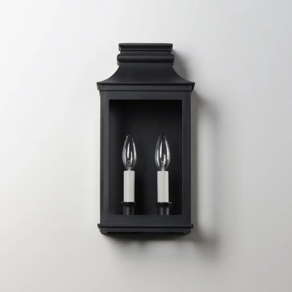 Inspired by classic colonial design, these climate-tough pocket sconces offer traditional charm and stylish finish combinations. Clear glass allows unobstructed light output and visibility into the sconces with candlesticks that stand out in their off-white finish. While the outer frame is made in a textured Black Oxide finish, the interior plate is finished either in a matching finish or contrasting Antique Copper or Verdigris finish. Available as a one, two, or three-light wall sconce, this offering of pocket sconces presents another style of Vivex outdoor products complementing more traditional exteriors.