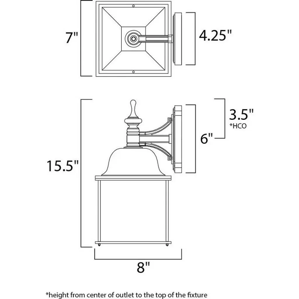 Senator is a mediterranean style from Maxim Lighting International in Black, or Rust Patina finish. Back Plate Height: 6.00 Back Plate Width: 4.25 Dimmable: Yes Shade Included: Yes Material: Aluminum, Finish Color: Black, Width: 7", Height: 15.5", Length: 8", Depth: 8", Height From Outlet Box: 3.5", Backplate Width: 4.25", Backplate Length: 6", Lamping Type: Incandescent, Number Of Bulbs: 1, Wattage: 60 Watts, Dimmable: Yes, Moisture Rating: Wet Rated