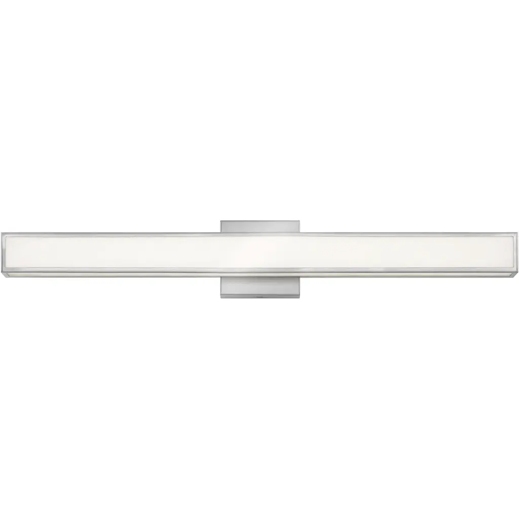 This minimalistic contemporary approach to LED vanity lighting will be the standard for both residential and commercial applications. The light engine features a high quality dimmable driver with multi volt input and high color rendering LEDs for the ultimate vanity lighting. Material: Aluminum, Finish Color: Polished Chrome, Width: 30", Height: 4.75", Depth: 2.75", Height From Outlet Box: 2.75", Backplate Width: 4.75", Backplate Length: 4.75", Lamping Type: LED, Number Of Bulbs: 1, Wattage: 20 Watts, Cri: 90, Color Temperature: 4000 Kelvin, Lumens: 1550, Moisture Rating: Damp Rated