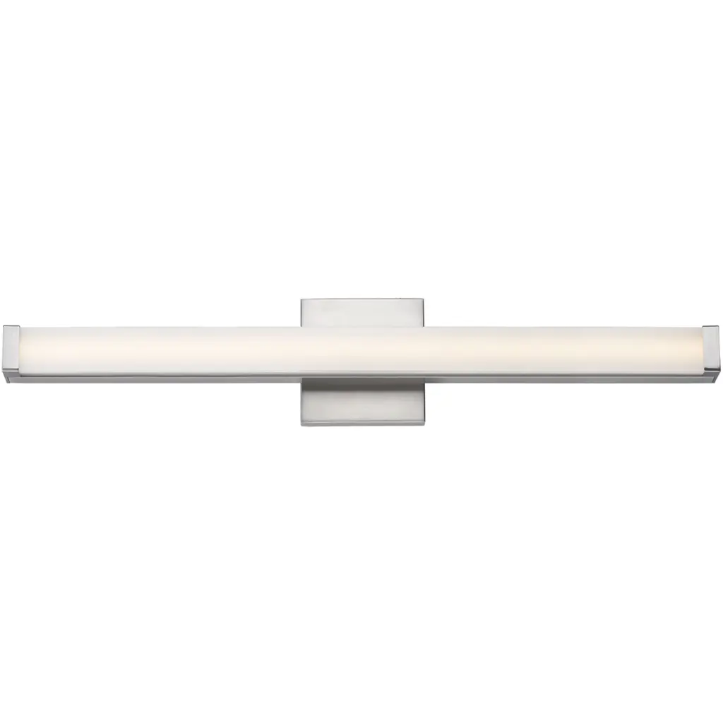 This minimalistic contemporary approach to LED vanity lighting will be the standard for both residential and commercial applications. The light engine features a high quality dimmable driver with multi volt input and high color rendering LEDs for the ultimate vanity lighting. Material: Aluminum, Finish Color: Satin Nickel, Width: 18", Height: 4.75", Depth: 2.75", Height From Outlet Box: 2.75", Backplate Width: 4.75", Backplate Length: 4.75", Lamping Type: LED, Number Of Bulbs: 1, Wattage: 16 Watts, Cri: 90, Color Temperature: 4000 Kelvin, Lumens: 1250, Moisture Rating: Damp Rated