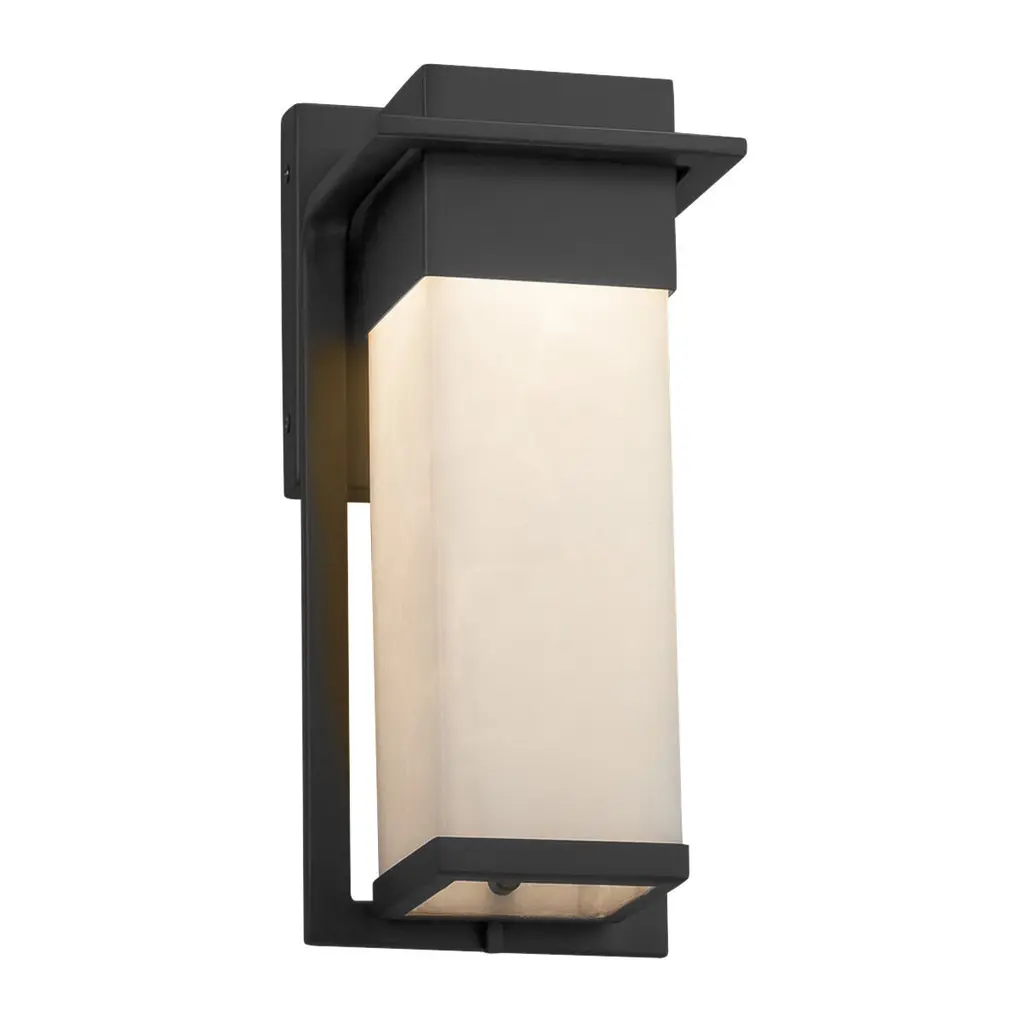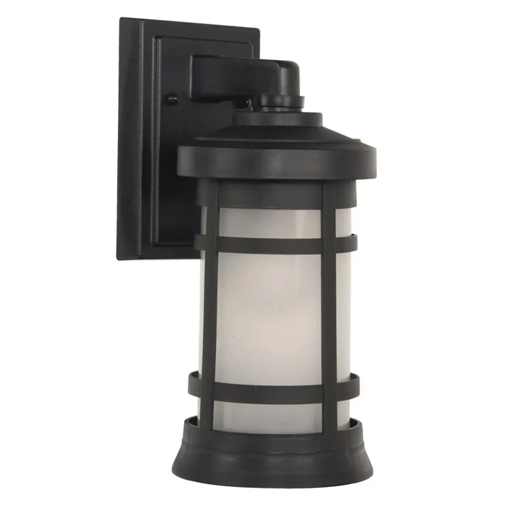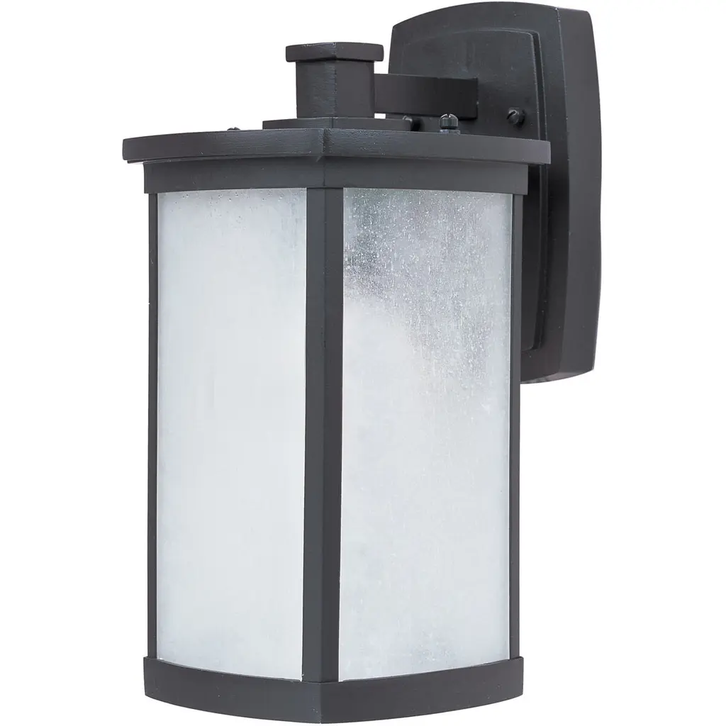 Simple lines create a transitional style that fits a wide variety of exterior home design. Available in both Platinum or Bronze finish, Frosted Seedy or Clear Ribbed glass, or fluorescent, incandescent or LED lamping. Back Plate Height: 7.75 Back Plate Width: 5.25 Dimmable: Yes Shade Included: Yes Material: Aluminum, Finish Color: Bronze, Width: 7", Height: 13.75", Length: 8.5", Depth: 8.5", Height From Outlet Box: 2.25", Backplate Width: 5.25", Backplate Length: 7.75", Lamping Type: Incandescent, Number Of Bulbs: 1, Wattage: 60 Watts, Dimmable: Yes, Moisture Rating: Wet Rated