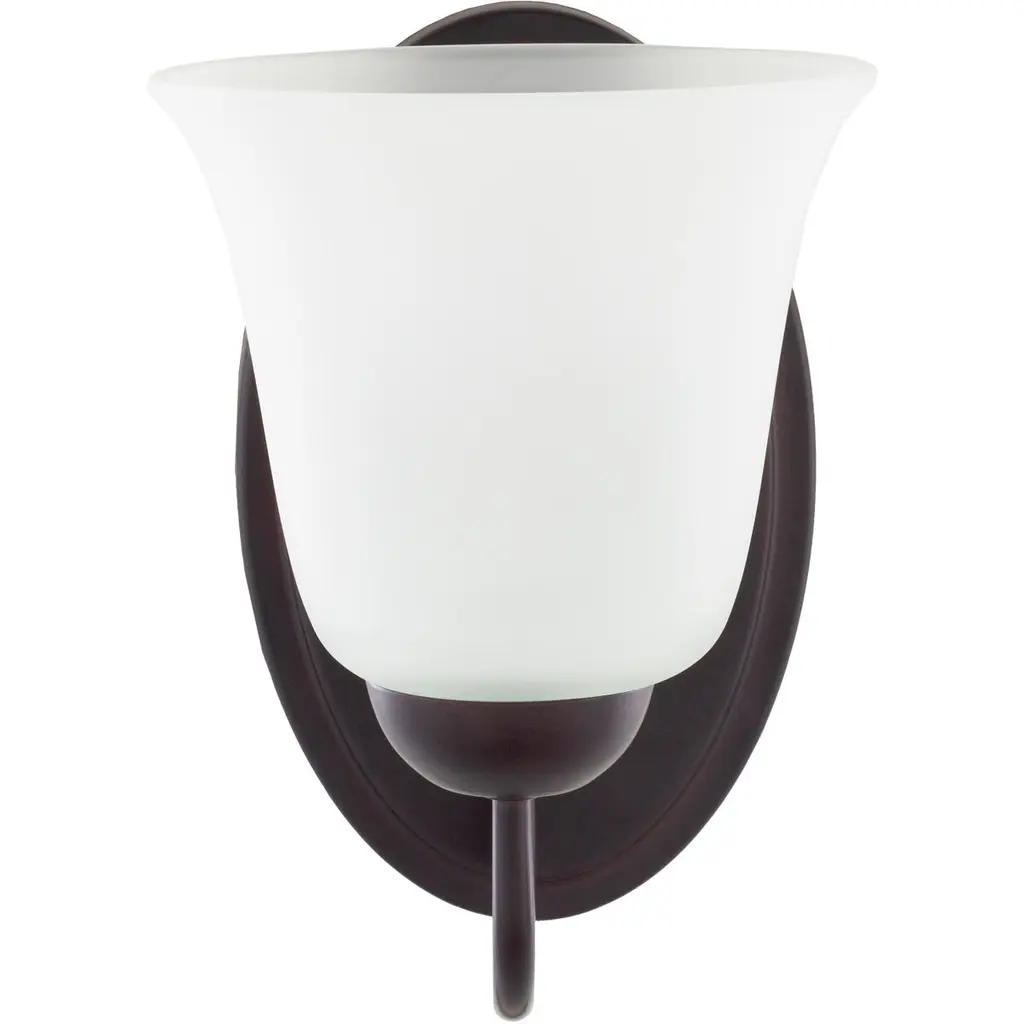Gently waving arms of Satin Nickel or Oil Rubbed Bronze support tall-profile Frosted glass shades creating a scale normally not found in this category of lighting. The bath vanity may be installed up or down and also includes a Polished Chrome finish. Mounting Direction: Omni Back Plate Height: 4.25 Back Plate Width: 7.00 Dimmable: Yes Shade Included: Yes Shade Dimensions: 6.00