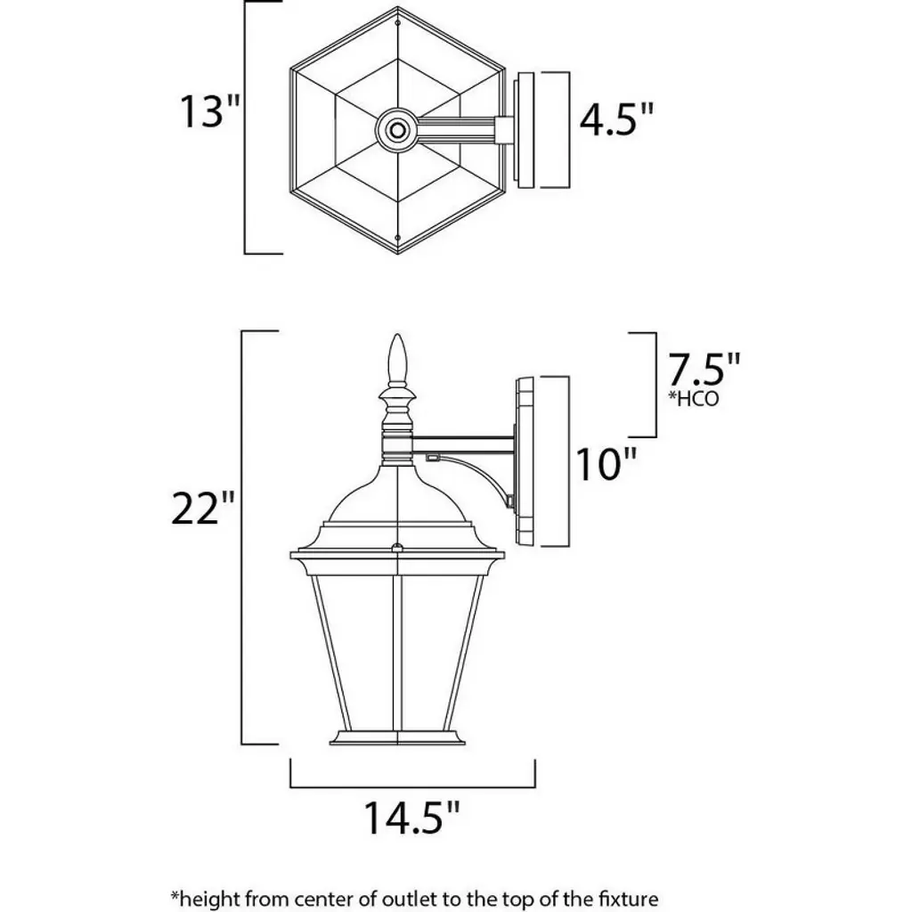 Westlake is a transitional style from Maxim Lighting International in Black, Rust Patina, Empire Bronze, or White finish. Back Plate Height: 10.00 Back Plate Width: 4.50 Dimmable: Yes Shade Included: Yes Material: Aluminum, Finish Color: Black, Width: 13", Height: 22", Length: 14.5", Depth: 14.5", Height From Outlet Box: 7.5", Backplate Width: 4.5", Backplate Length: 10", Lamping Type: Incandescent, Number Of Bulbs: 3, Wattage: 40 Watts, Dimmable: Yes, Moisture Rating: Wet Rated
