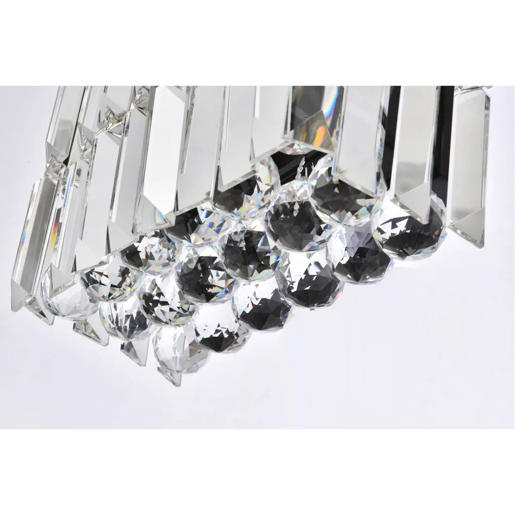 A riot of shapes and textures, Maxime collection wall sconces sparkle in a mosaic of crystal tiles. Square and rectangular precision-cut crystals form the flamboyant semicylindrical or rectangular exterior while faceted crystal balls create a bubbled effect for light to shine through beneath. Available in a black or chrome finish with clear crystals, these lamps are a luxurious addition to a bathroom, entryway, or kitchen.