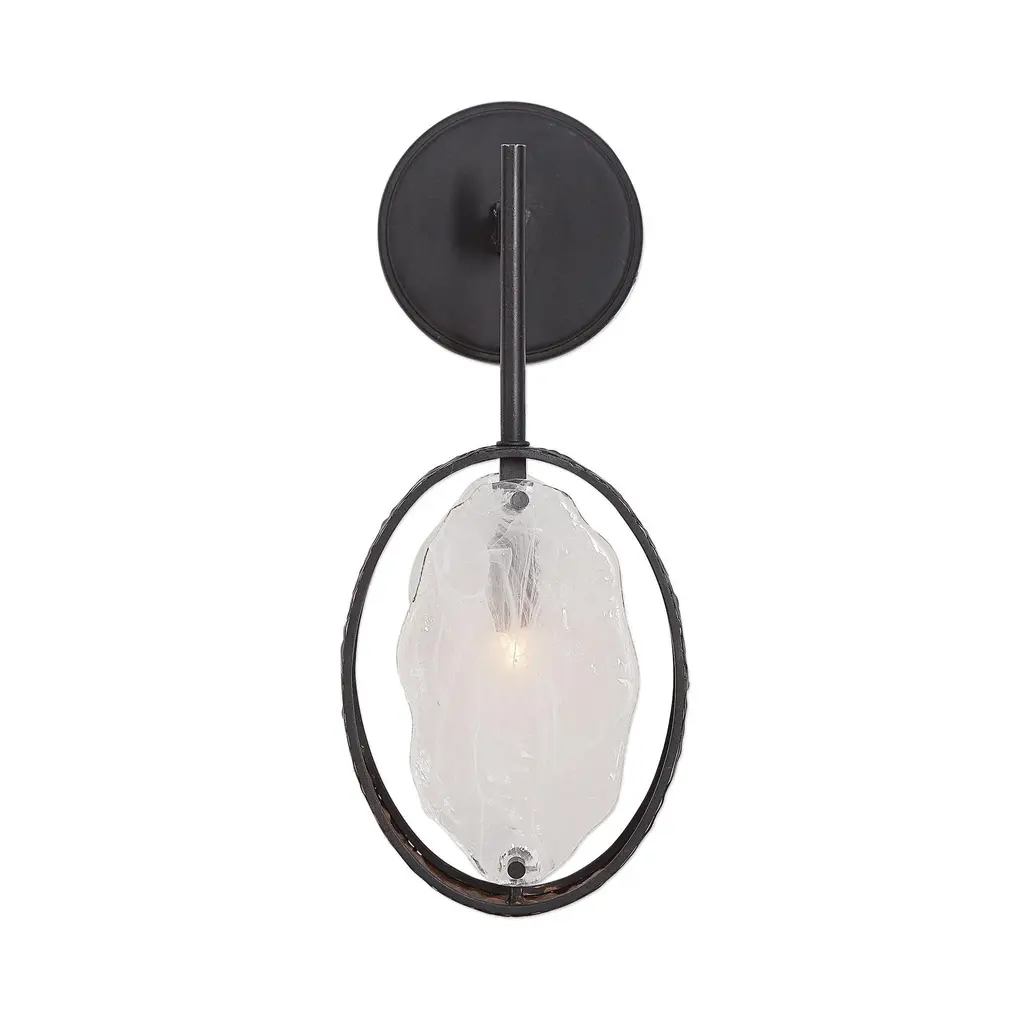 Ring Of Dark Hammered Bronze Finished Metal With A Subtle Golden Interior. Inspired From Mid-century Modern Design, The Ring Holds Two Handmade Artisan Inspired Clear And White Swirl Glass Ovals. Includes 1-40 Watt Max G9 Socket.