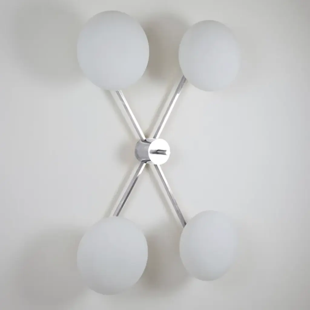 A beveled brass backplate with flat-head screws lends this globe-style design a note of industrial charm. Hardwired.
