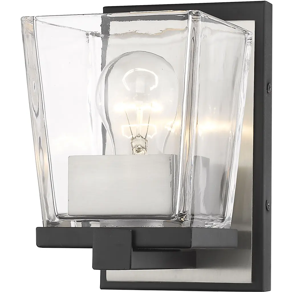 From the wide rectangular backplate to the custom square clear glass shades, the sharp design of the McClane collection was designed with your style in mind. Offered in two finishes, the McClane is available in a 1 light wall sconce up to a four light vanity. Tubular bulb(s) recommended. Bulbs not included.
