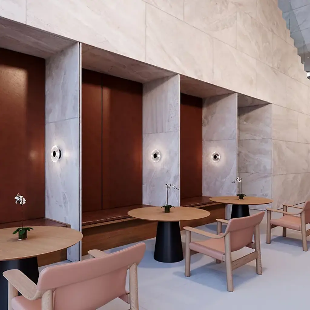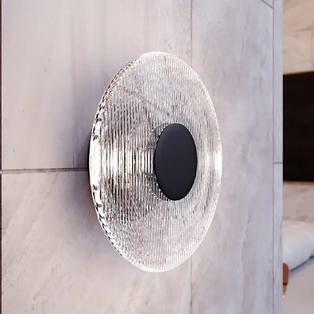 All-around radiance and sparkle for modern spaces of all sizes. The Meclisse LED Wall Sconce by SONNEMAN was designed to bring a whole lot of both, in a relatively small package. This wall sconce is able to produce a whole lot of light courtesy of its unique shade, a slim disc of Ribbed Glass. The glass surrounds the central LED light source and, due to its distinctive texture, is able to both enhance and diffuse the light in all directions. The metal stem holds the shade at just the right distance from the wall to guarantee the largest halo of light possible around the fixture.