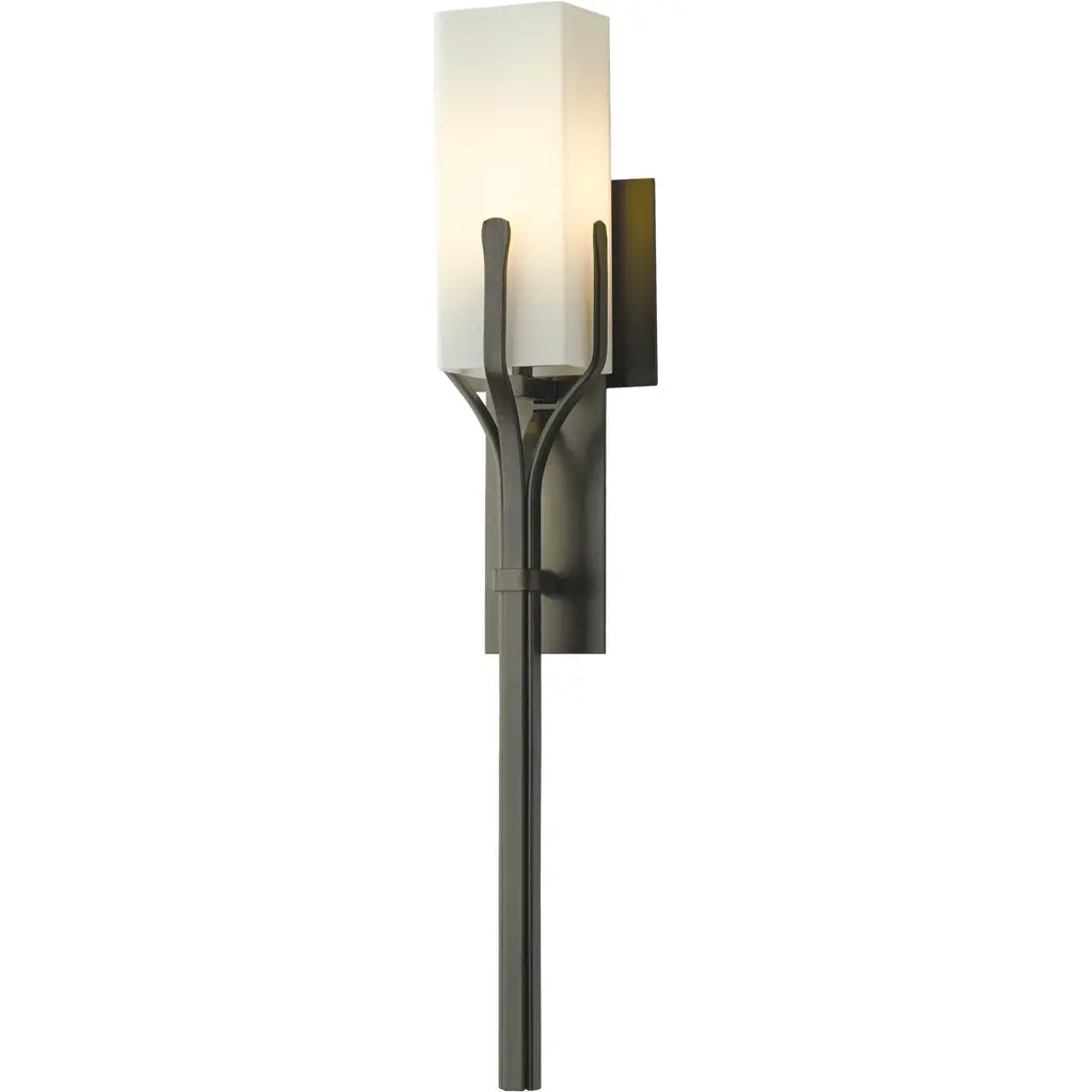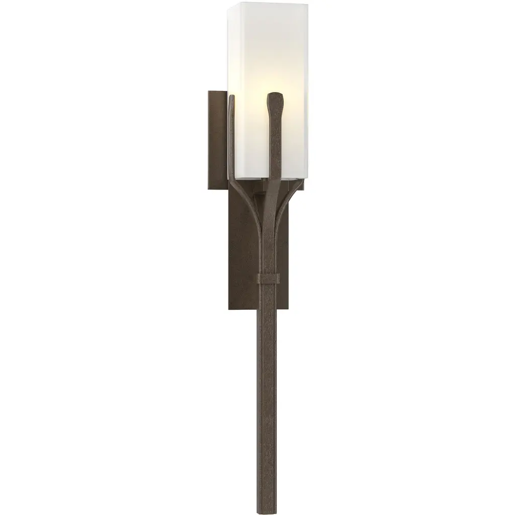 Our Mediki Sconce could be considered a modern (and durable) update to the tiki torch. The artisans at our Vermont forge use hand-shaped steel to form a cradle around the square glass tube.