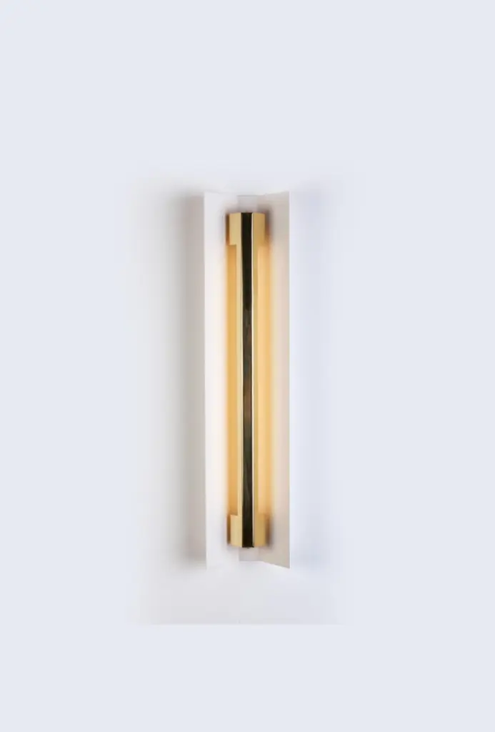 Medium Misalliance Ex pure white wall light by LexavalaDimensions: D 16 x W 100 x H 8 cmMaterials: powder coated shade with details made of brass or stainless steel.There are two lenghts of socket covers, extending over the LED. Two short are to be found in Suspended and Surface, and one long in the Wall model. Customization available. Choosing a different cover than the one in stock involves an additional fee.Hello! My name is Jakuband I’m glad you’re here.Light allows us to create everything.It illuminates the paths we walk and the tables we write our tales on.I have always wanted to create somethingthat standouts from the first time it shines and maintains timeless standards.Every piece released by this companyis a carefully touched product ment to tell something.One isn’t just a lamp. It’s a jewelery with a collection of emotions.I strongly believe that here is where your strivefor a key element of decor could end.Combining efficiency of Industrial workspace and magnificanceof handcrafted materials there was only one outcome – Lexavala.Minimalism with boundless range.My company delivers practical art. I make sure every lampaccepted in your living space is going to become a worthy part of your story.