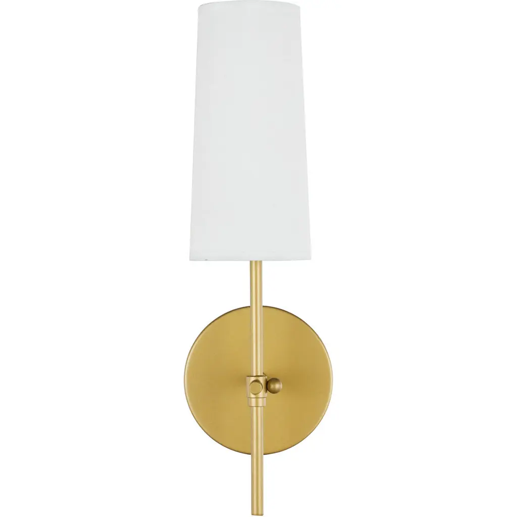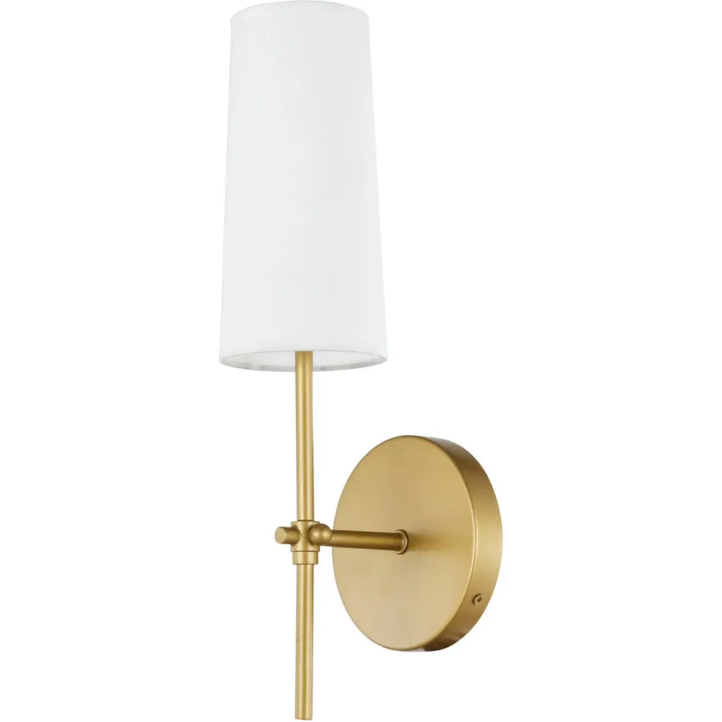 The Mel Collection of wall lamps adds refined simplicity to your life. Its unassuming design is versatile to blend in with any décor, but the sleek rod and clean linen shade adds contemporary elegance and style. Adding a breath of fresh air, this wall lamp, available in a black, polished nickel, or a two-toned brass and black finish, is the perfect addition to your bathroom or entryway (light bulbs not included).