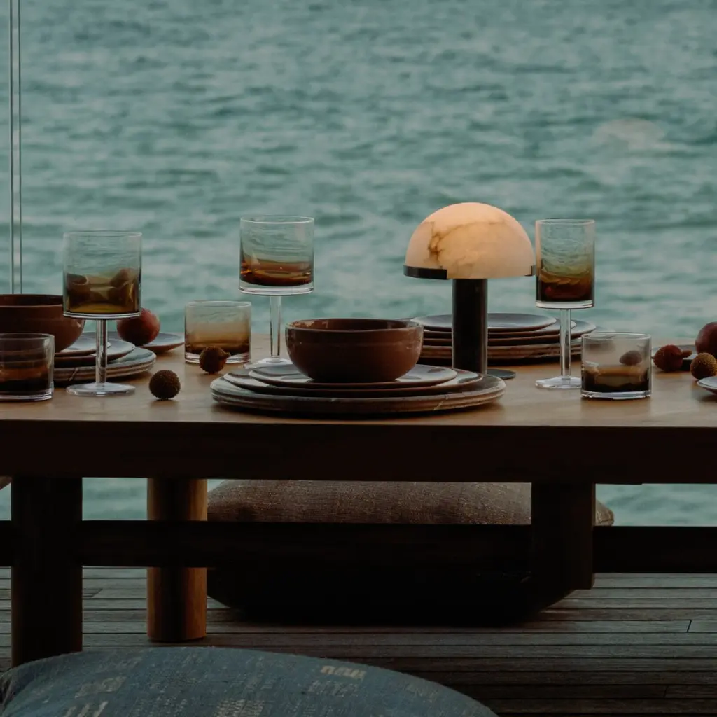 Pairing a graceful silhouette with alabaster stone and burnished metal, the Melange 8” Rechargeable Accent Lamp reinvents the classic lamp design into a versatile, petite and portable profile. Its hand-carved alabaster shade is gently embraced by metal prongs that seamlessly blend into the base, exemplifying meticulous craftsmanship and sophisticated design. A 3-way touch dimmer provides full control over the warm glow emitted by its integrated LED light source. Due to the distinctive qualities of natural alabaster, each lamp is one of a kind. The Melange lighting family comprises wall sconces, table lamps, flush mounts, pendants, and chandeliers, which can be showcased together as a complete series or individually as illuminated sculpture.