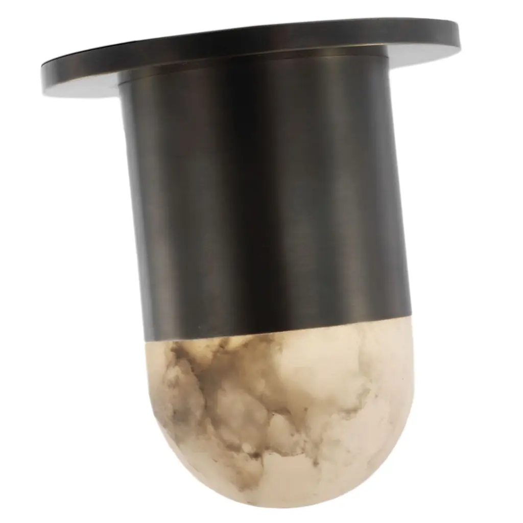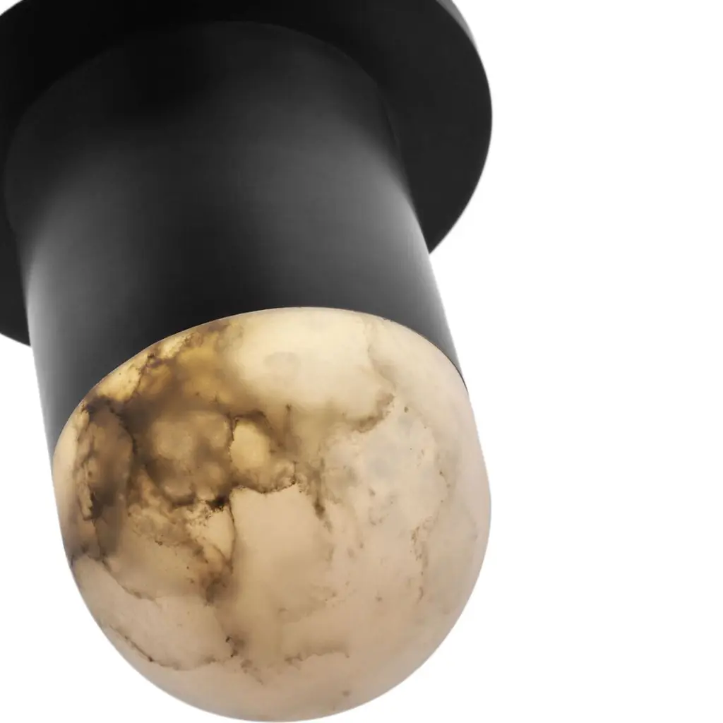 The Melange Mini Monopoint Flush Mount series by Kelly Wearstler artfully combines natural alabaster with metal in rounded forms and unique configurations, creating a harmonious blend of organic and luxurious elements for a modern chic interior. The carved alabaster shades emit a soft, inviting glow on walls and surfaces, while the streamlined shapes elegantly complement both angular and minimalist surroundings. Each alabaster piece features unique variations in veining and tone, adding a custom character that is both collectible and appealing. The detailing, available in various finishes, provides a striking contrast and shine. Whether you opt for flush mounts, pendants, sconces, or table lamps, the Melange lighting collection offers a multi-layered aesthetic that enhances living spaces, bedrooms, hallways, and dining areas with its sophisticated allure.