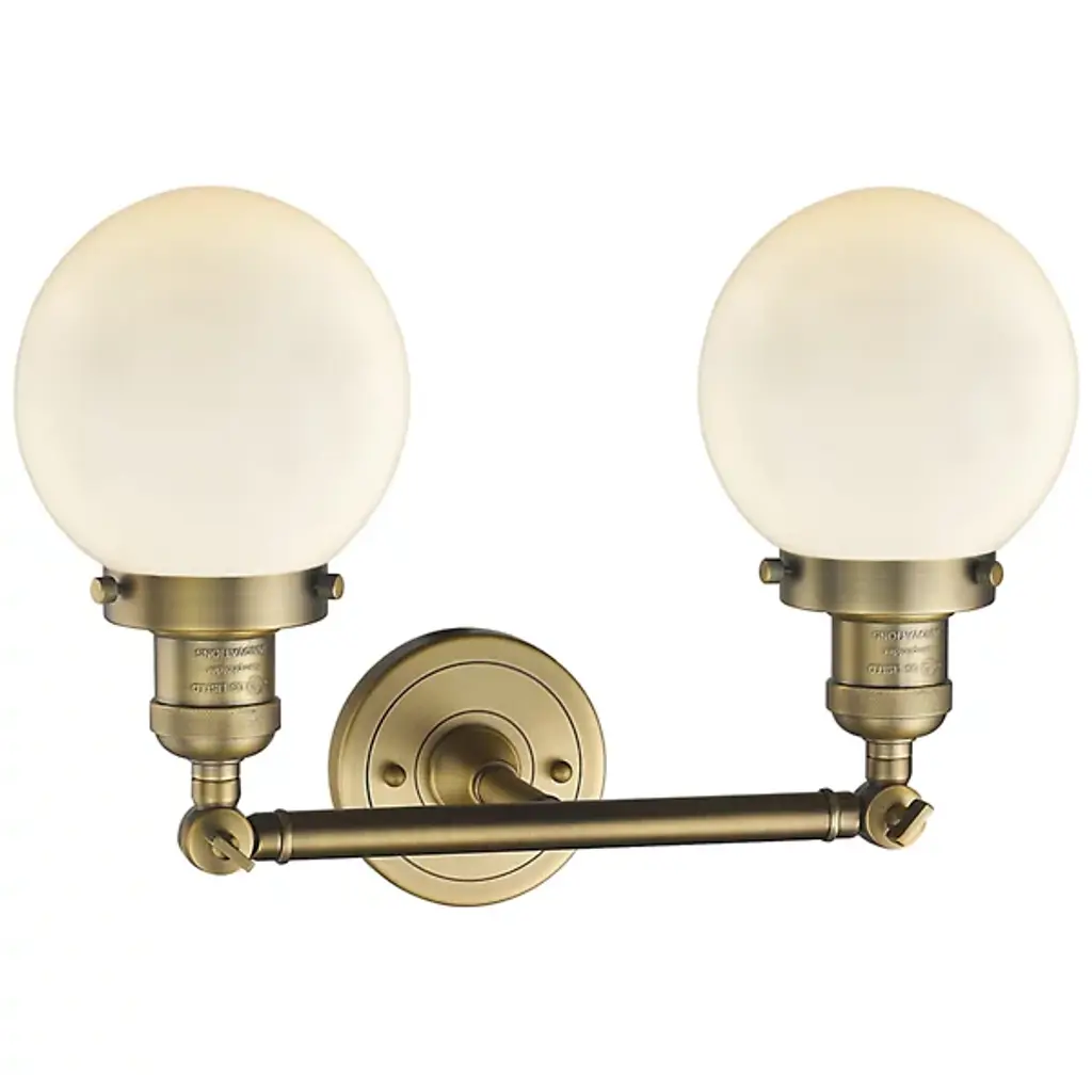 The Melena Adjustable Vanity Light by Alder & Ore is a charming addition to illuminate a guest bath, primary suite or powder room. Its restoration style and heavy metal finish complement a range of decor styles, with glass shades that add a touch of elegance and allow for plenty of light to brighten up the space. This fixture is designed to be mounted above a vanity, providing the perfect amount of light for daily grooming tasks and more.