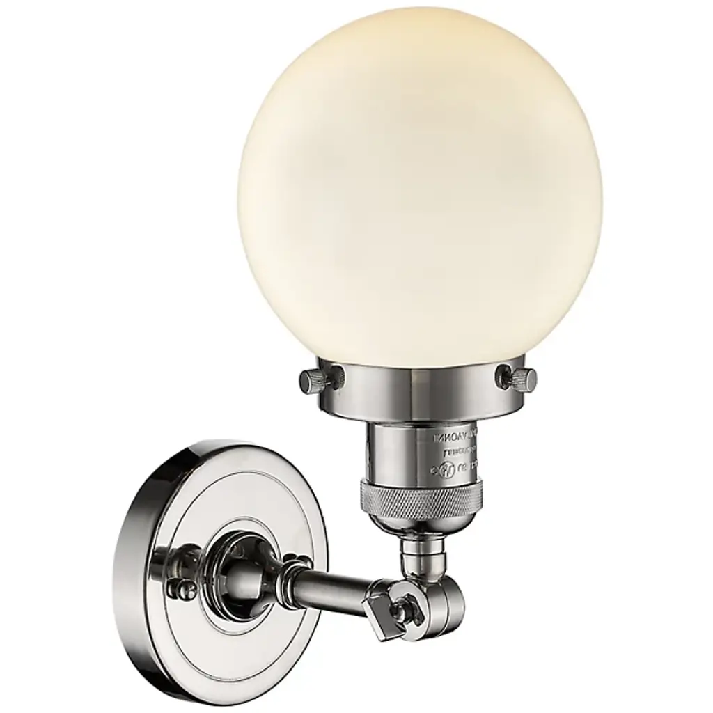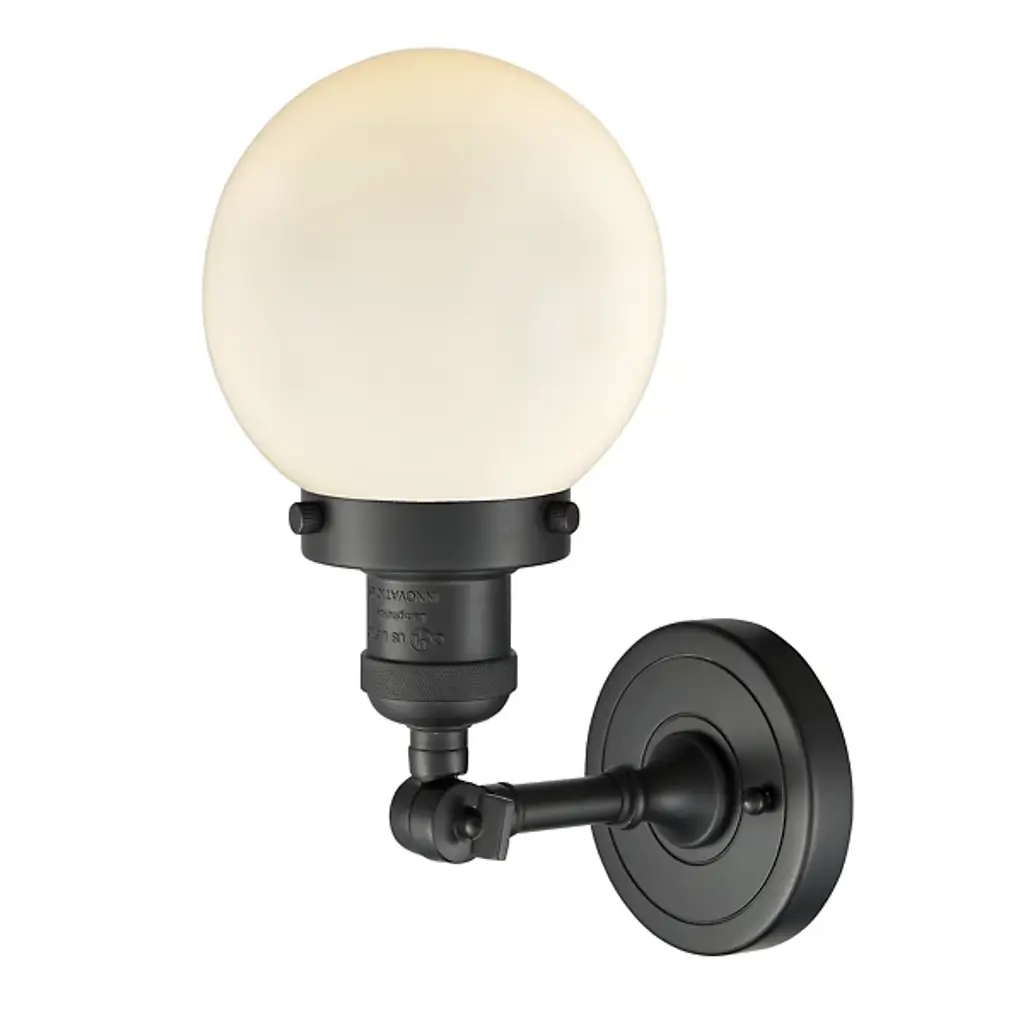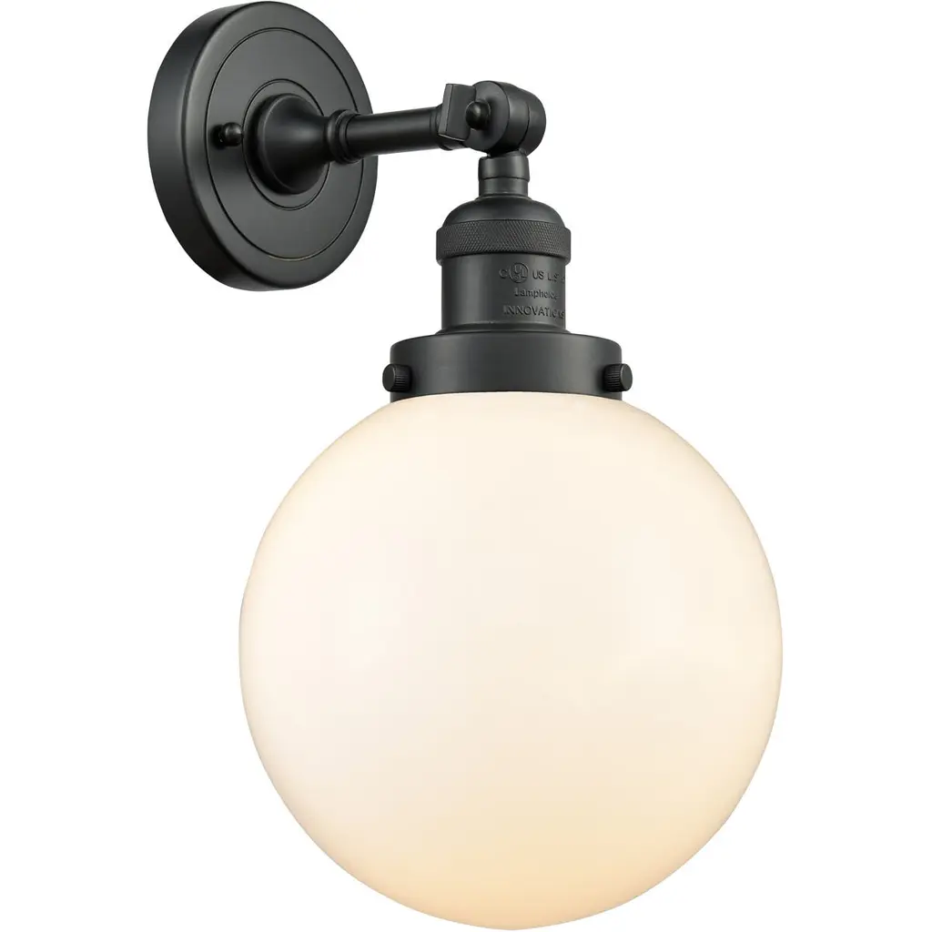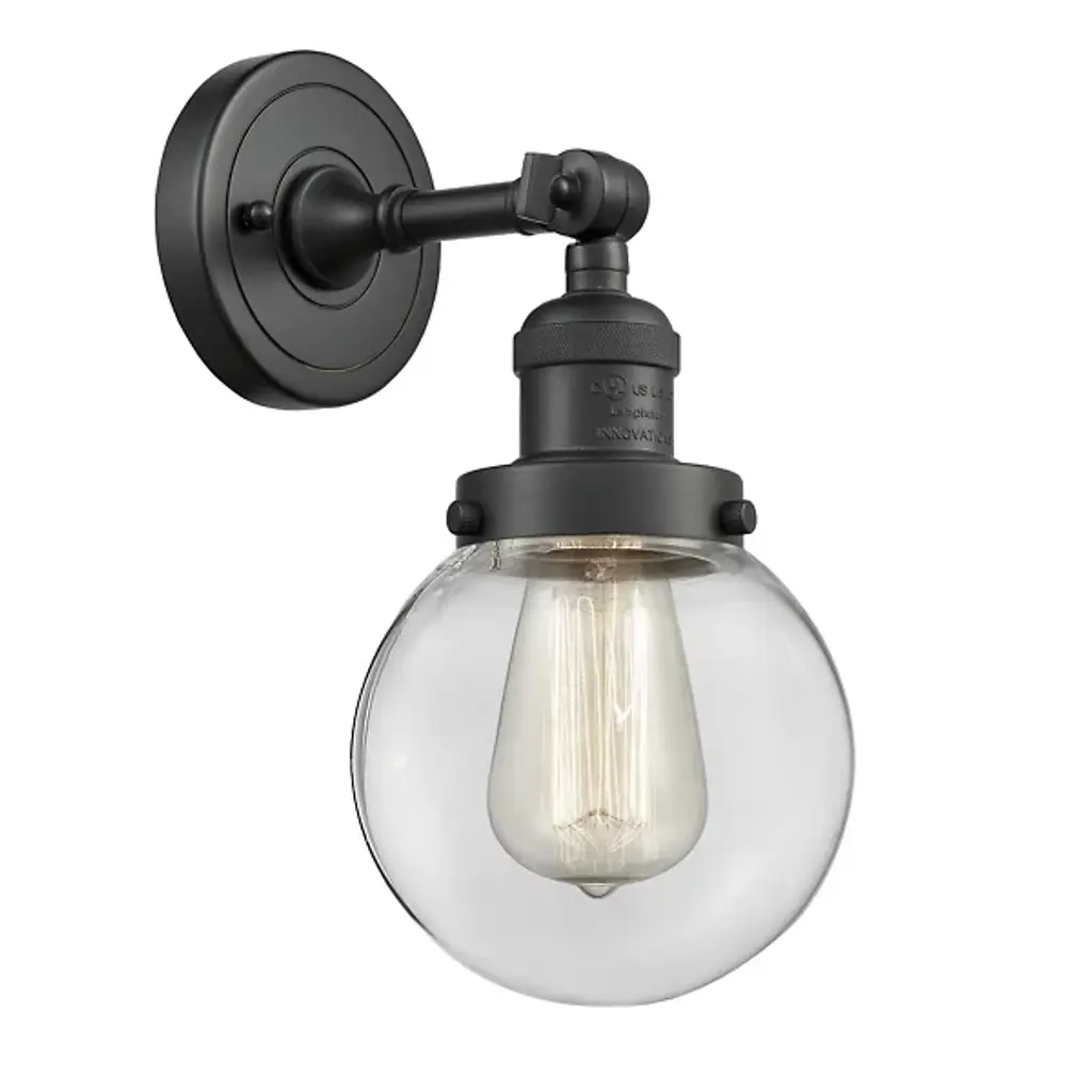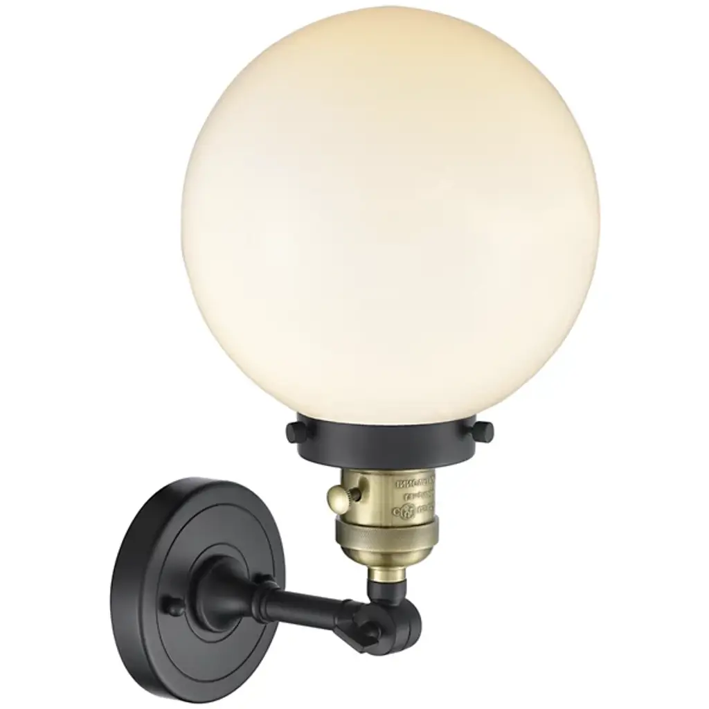 Delighting with shape, light, and convenience. Find the right angle that suits the look and feel of your room with the Melena Adjustable Wall Sconce from Alder & Ore. The sconce’s compact design and level of adjustability is one near any room can appreciate. It features a protruding arm with an easy to tweak joint. Whether facing vertically or at an angle, the eyes are met with the industrial knurled and lettering accents on the lamp holder. A glass globe caps off the piece like a bubble. The globe mellows the light and the sconce’s overall sharp silhouette with its continuous curves. A flip of the switch generates a warm, attractive glow.