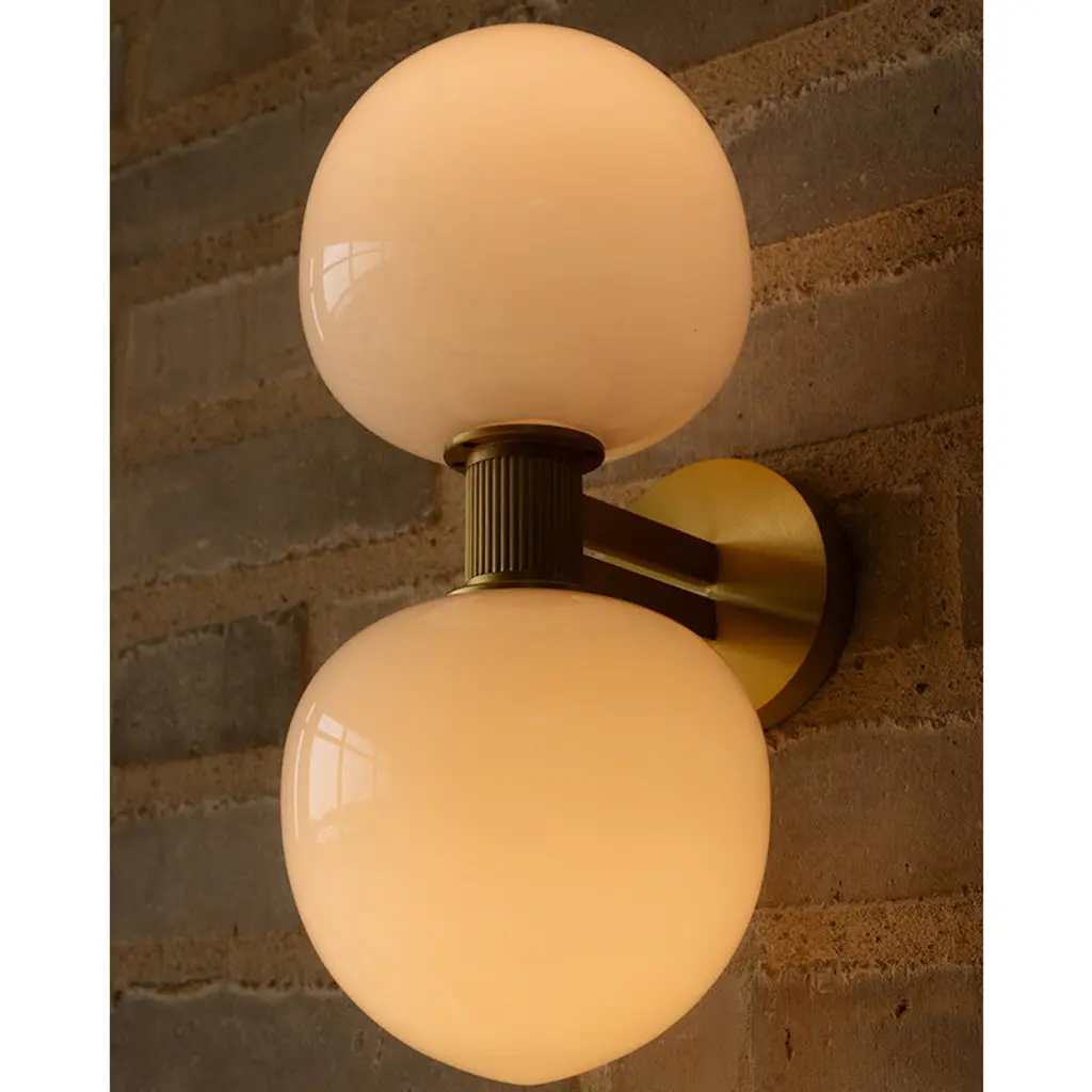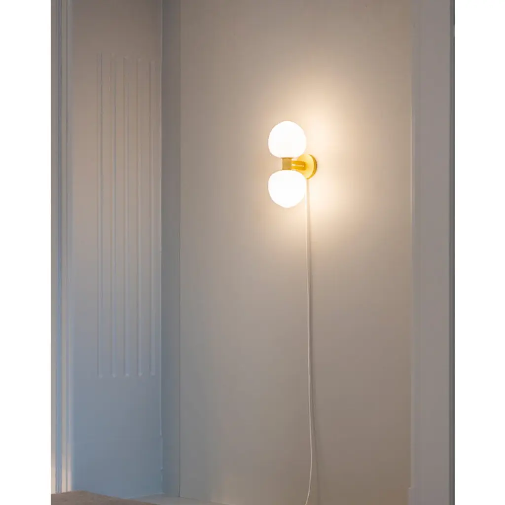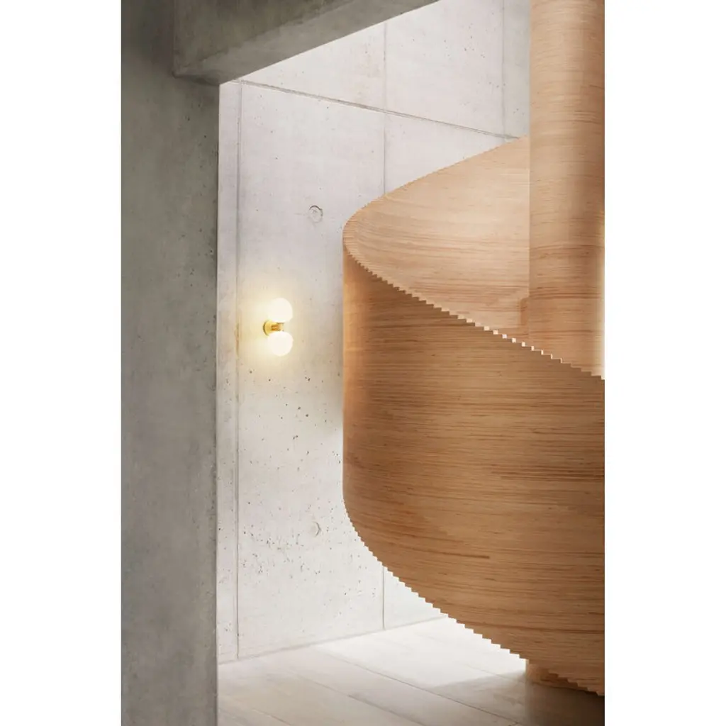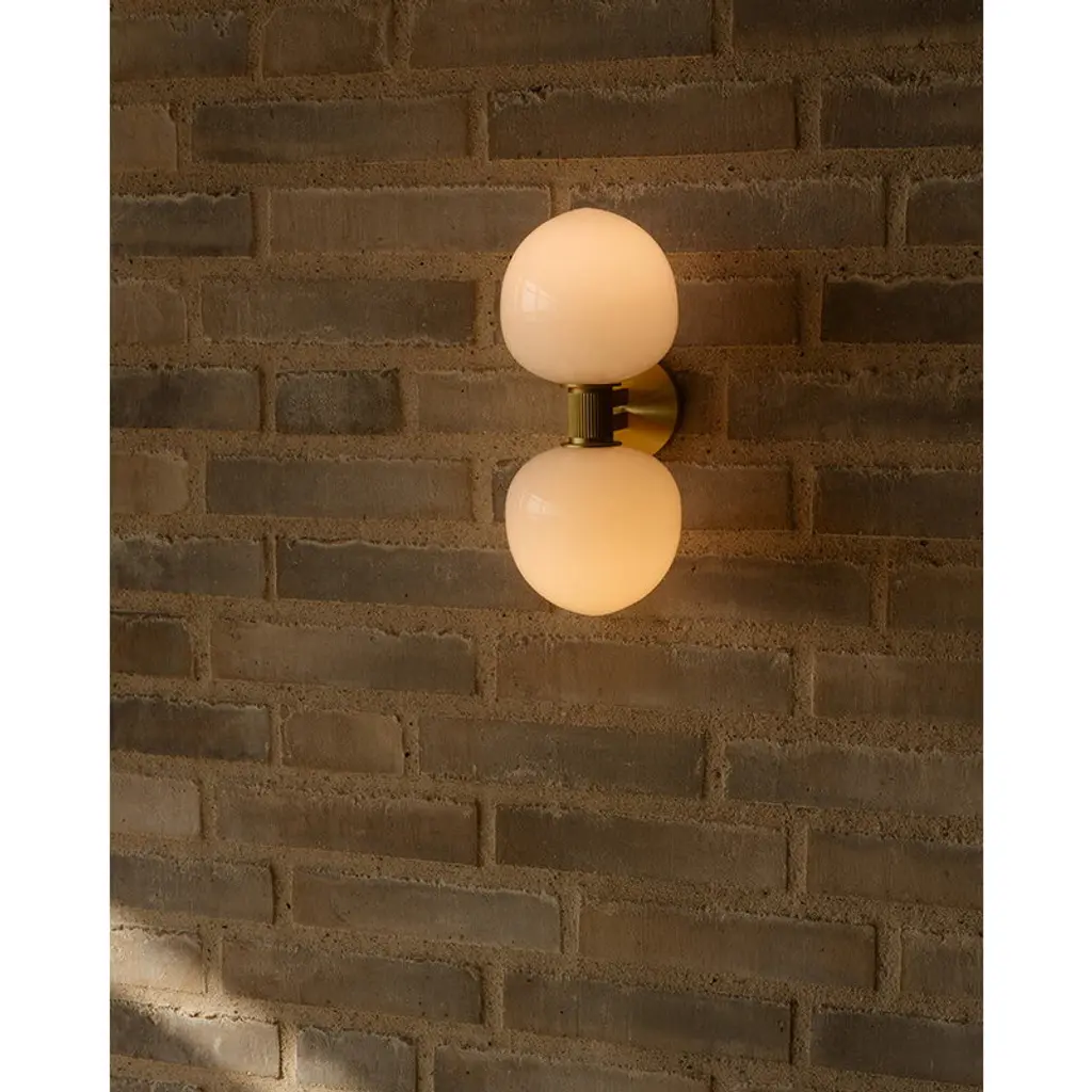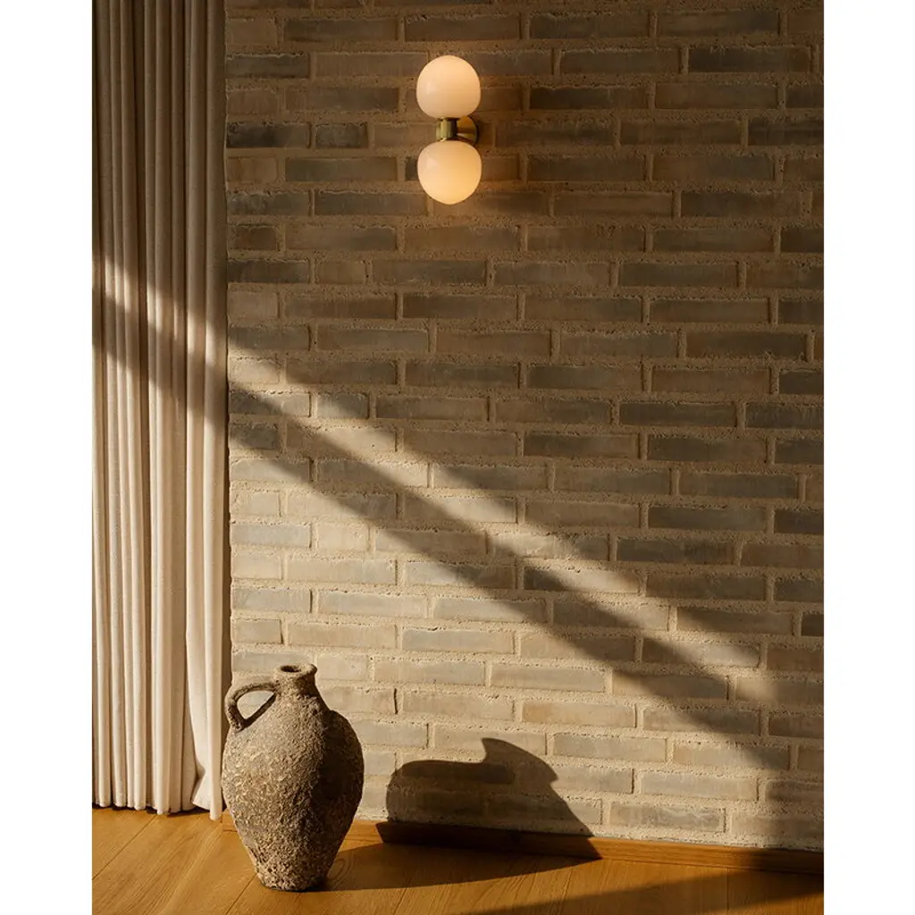 LYFA's Memoir wall lamp is part of the alluring lamp collection by design duo GamFratesi, who wanted to offer a distinctly modern interpretation of the classic chandelier. In this model, the metal section is combined with two stunning shades in three-layered opalised glass. The sculptural lamp will surely prove captivating when placed in the hallway – or perhaps you would rather admire it prior to calling it a day, attached to the wall on both sides of a plush bed. The Memoir collection exudes the feel of a bygone era, yet with a contemporary twist. At the heart of it all is an opal glass shade with an expressive tip, the most recognizable element of the lamp family that ensures a sense of cohesion. When combined with the decorative feel of the glass shade, the structure – along with its linear connectors – in anodised aluminum emanates a distinctly modern feel. The Memoir lighting series is suitable for use both in the home as well as public spaces.