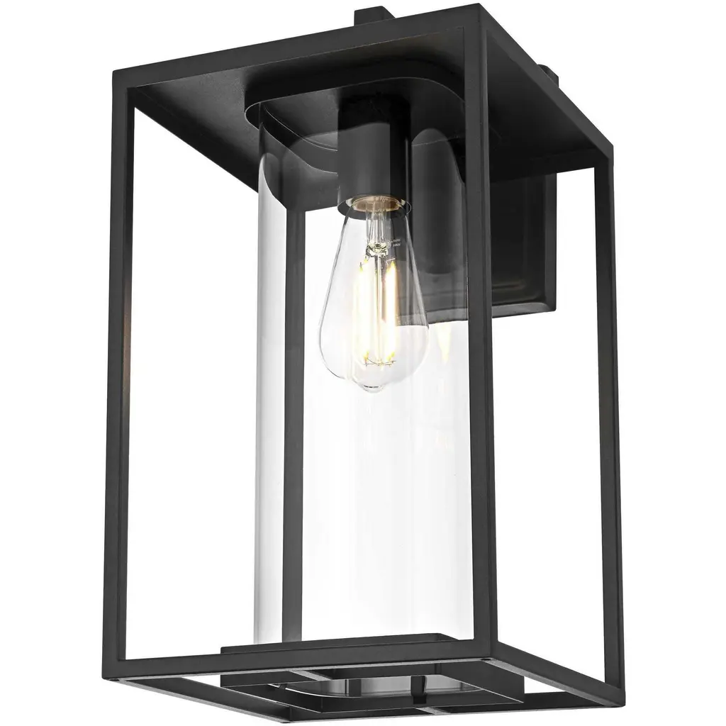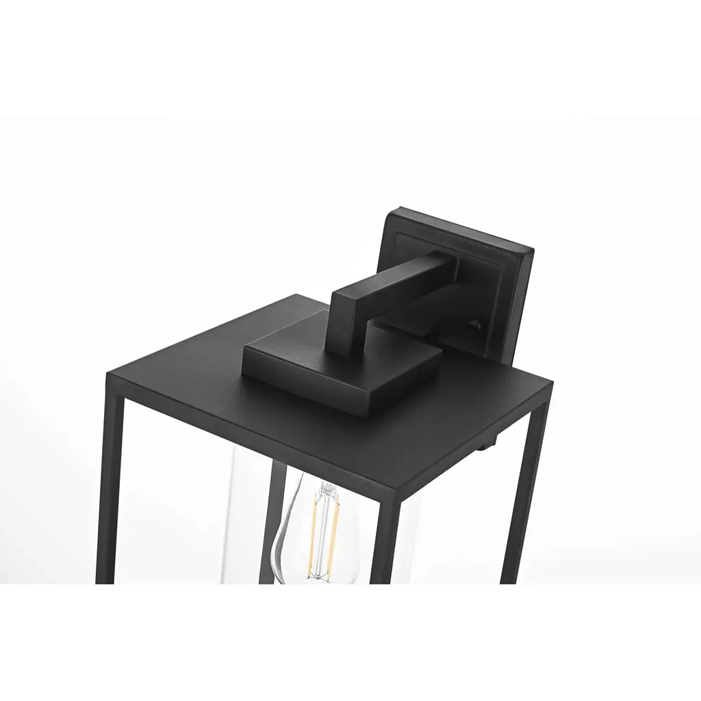 Introduce timeless charm and functionality to your outdoor space with this modern wall sconce. Crafted from durable iron and paired with a sleek glass cylinder, this sconce brings clean lines and a minimalist vibe to your exterior decor. It is thoughtfully designed to create a warm, ambient glow, ideal for front porches, patios, and entryways. The sturdy iron frame gives it a robust look, while the clear glass ensures the perfect display of your chosen bulb, allowing for a soft, inviting illumination. Built with practicality in mind, this fixture is as stylish as it is practical, perfect for complementing a range of exterior styles.