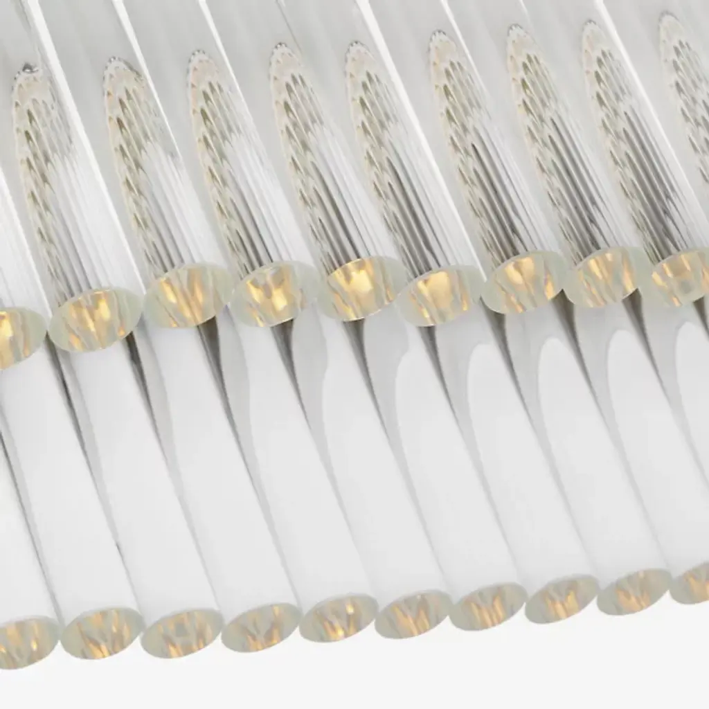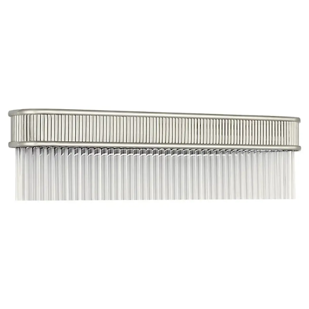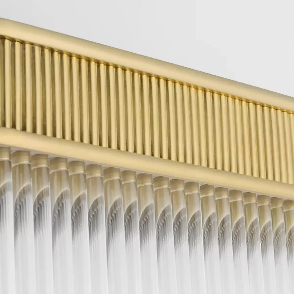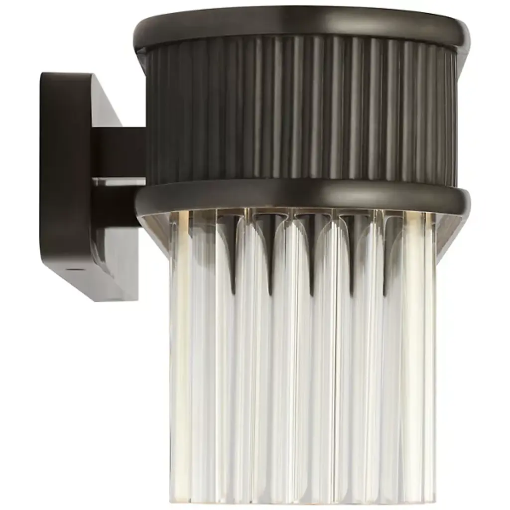 The Menil LED Wall Sconce from Visual Comfort Signature shows Marie Flanigan's mastery of linear decoration. A cascade of glass rods descends from the mounting plate, creating a waterfall effect that transforms when illuminated. The fixture works brilliantly in luxury bathroom settings, such as dramatic hallway lighting or flanking oversized mirrors, where it can maximize the interplay between light and glass.