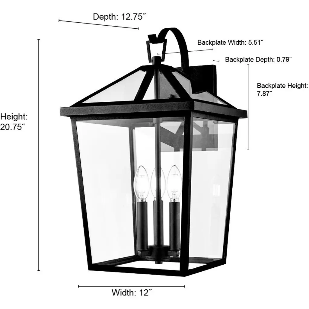 Mensun 3 Light 20.75 Inch Textured Black Outdoor Wall Sconce