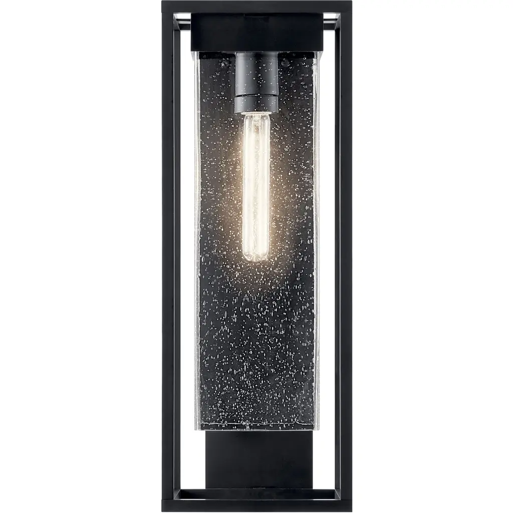 The Mercer 24" 1 Light Outdoor Wall Light with Clear Seeded Glass in Black with Silver Highlights
