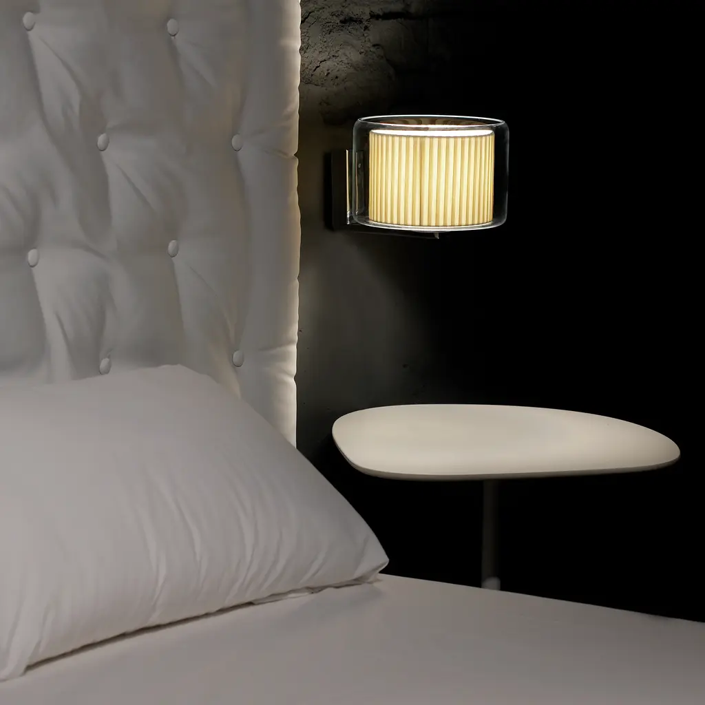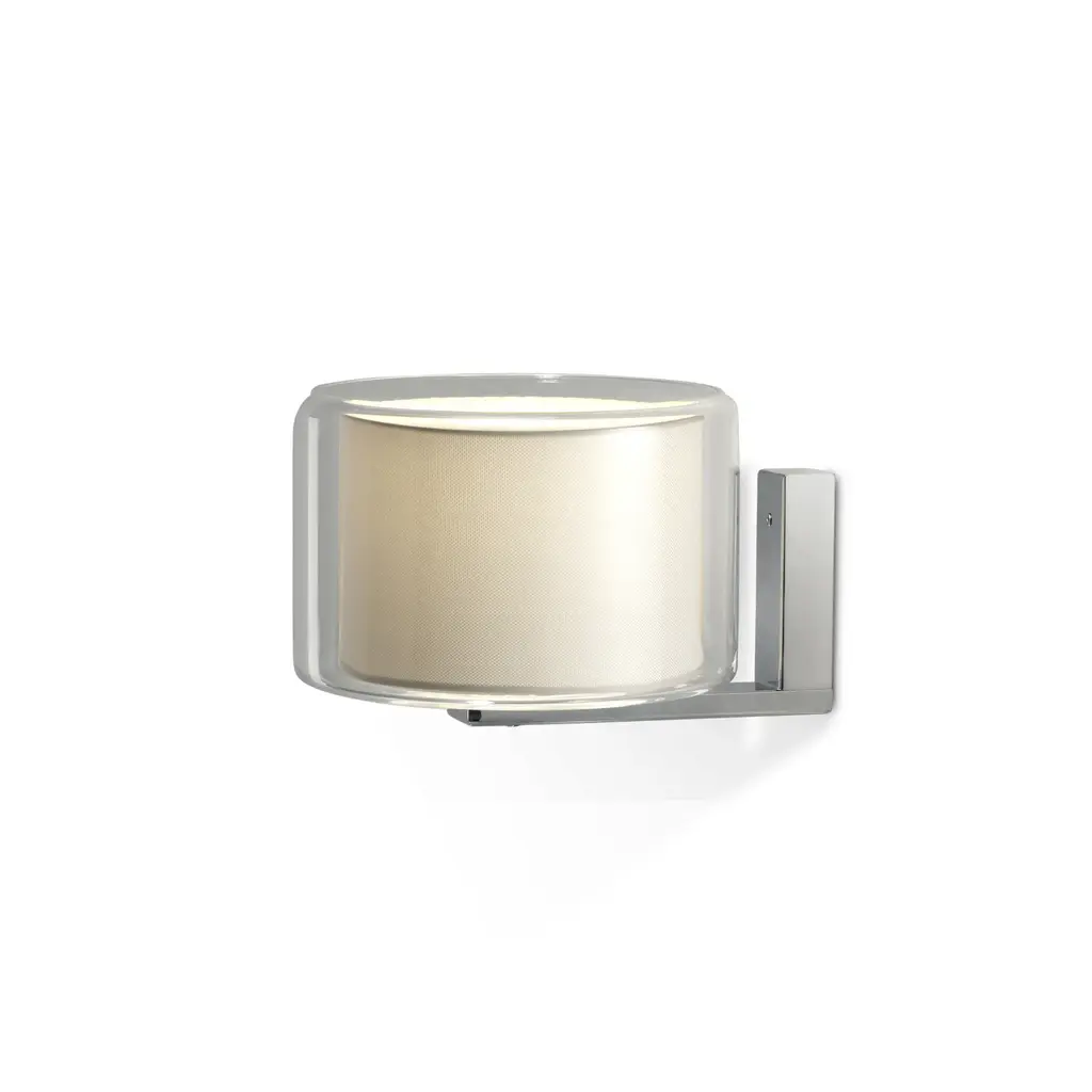 Elevate your surroundings with the subtle sophistication of the Mercer Wall Sconce from Marset. Its unique blend of materials, including a fabric shade and transparent blown glass, creates an attractive piece that will enhance any room. With a secure chromed iron wall bracket, this fixture provides diffused and delicate light, making it perfect for bedside reading or illuminating a hallway or stairwell. Highlights