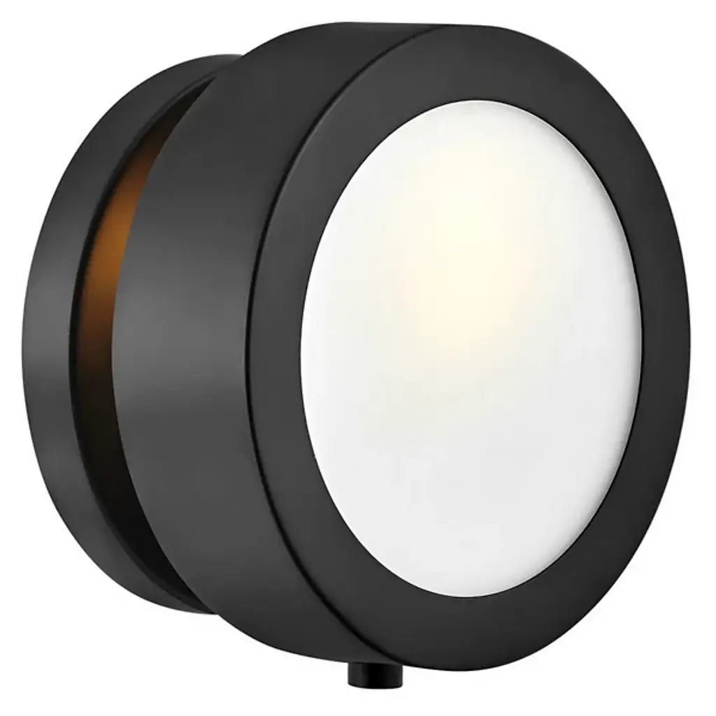 The wonderfully versatile Mercer Wall Sconce by Hinkley Lighting can give any room or hallway a modern flair in addition to much needed lighting. Within its flat, circular body, an etched opal glass lens diffuses a single light source for a warm, ambient light. The rich finish allows for additional reflection of light, giving you a direct and indirect lighting effect all at once.