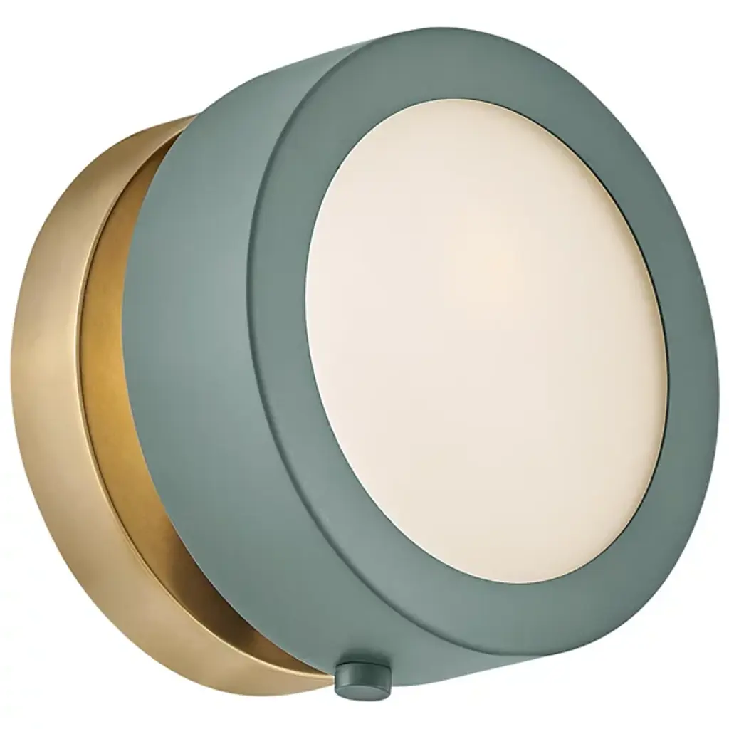 The wonderfully versatile Mercer Wall Sconce by Hinkley Lighting can give any room or hallway a modern flair in addition to much needed lighting. Within its flat, circular body, an etched opal glass lens diffuses a single light source for a warm, ambient light. The rich finish allows for additional reflection of light, giving you a direct and indirect lighting effect all at once.