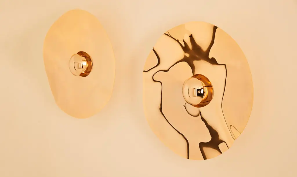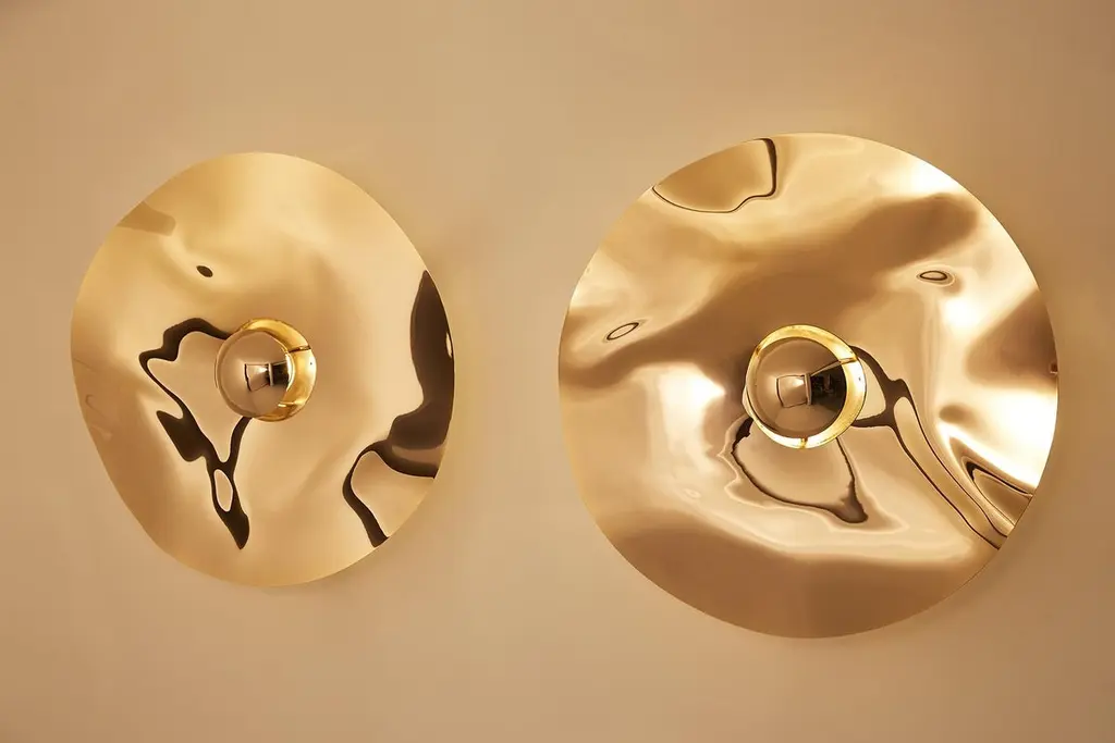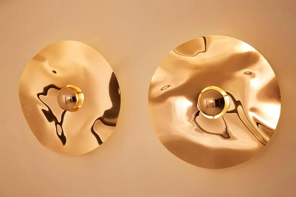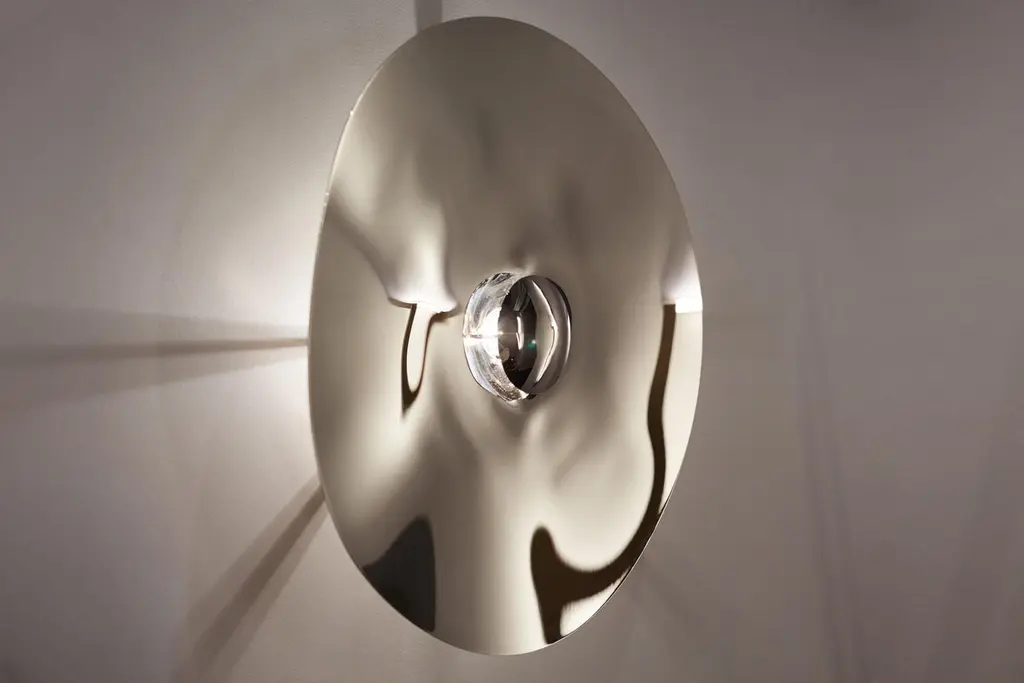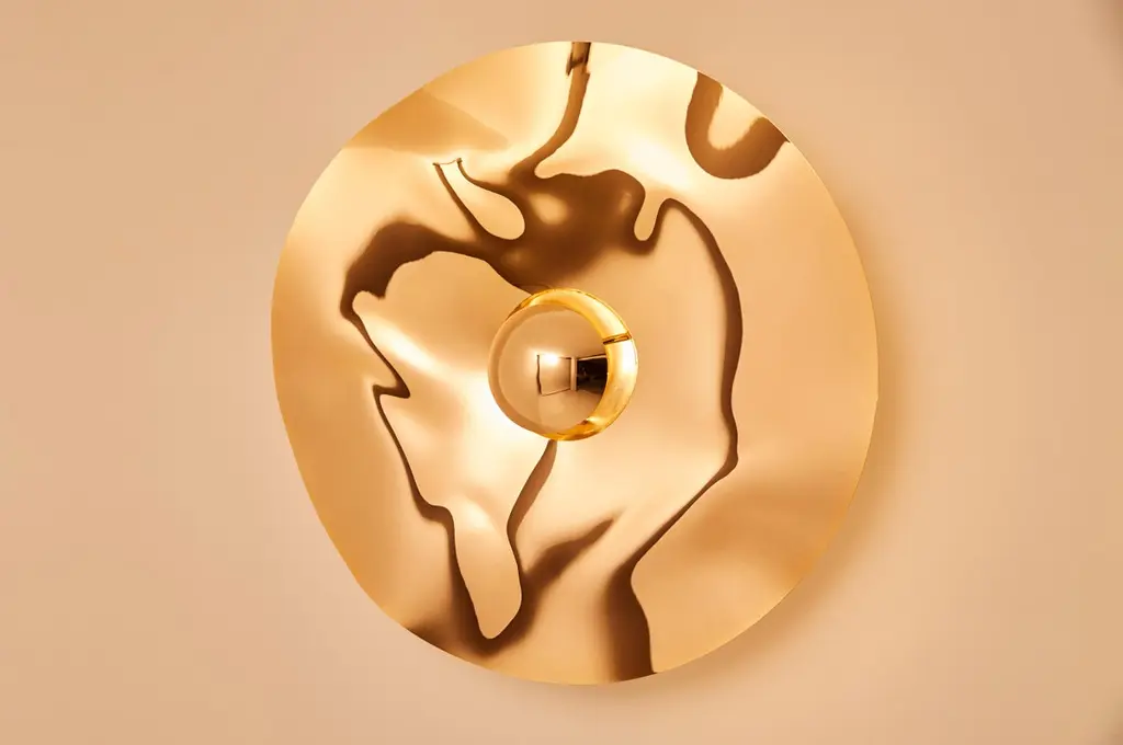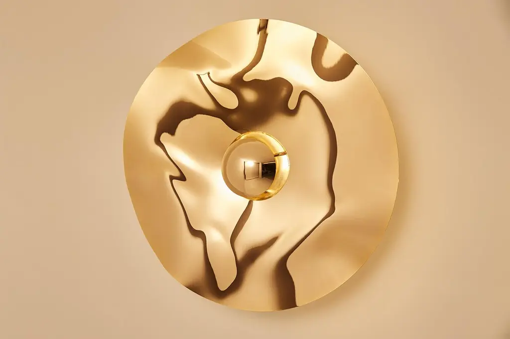 Mercure wall lamp by Mydriaz.Dimensions: W 40 x H 40 x D 17 cmMaterials: BrassFinishes: Golden-plated polished brass, White nickel finish on polished brass, Black nickel finish on polished brass3,5 kgLight source: Light bulb - 4 to 7 Watts - E14 - 220V or E12 - 110V -Class 2Certification: CE Certification, Other certifications possible via a subcontractor Our products are handmade in our workshop. Dimensions and finishes may vary slightly from one model to another dimensions can be customized certain changes in finishes and/or dimensions may result in additional costs.Founded in 2011, MYDRIAZ is a creation studio specializing in the tailor-made production of decorative lighting, monumental installations and brass furniture.At the head of MYDRIAZ, Jennifer Midoz and Malo du Bouëtiez offer refined sets combining brass with other noble materials. From the first sketch to the installation, the creators participate in all stages of the production.Elegance, balance and harmony are at the heart of their aesthetic concerns.Working at the convergence of artistic and craft disciplines, their work around lighting and furniture combines traditional manufacturing methods with contemporary techniques. Between requirement and avant-garde research, MYDRIAZ places sensitivity, finesse and lightness at the heart of its philosophy.