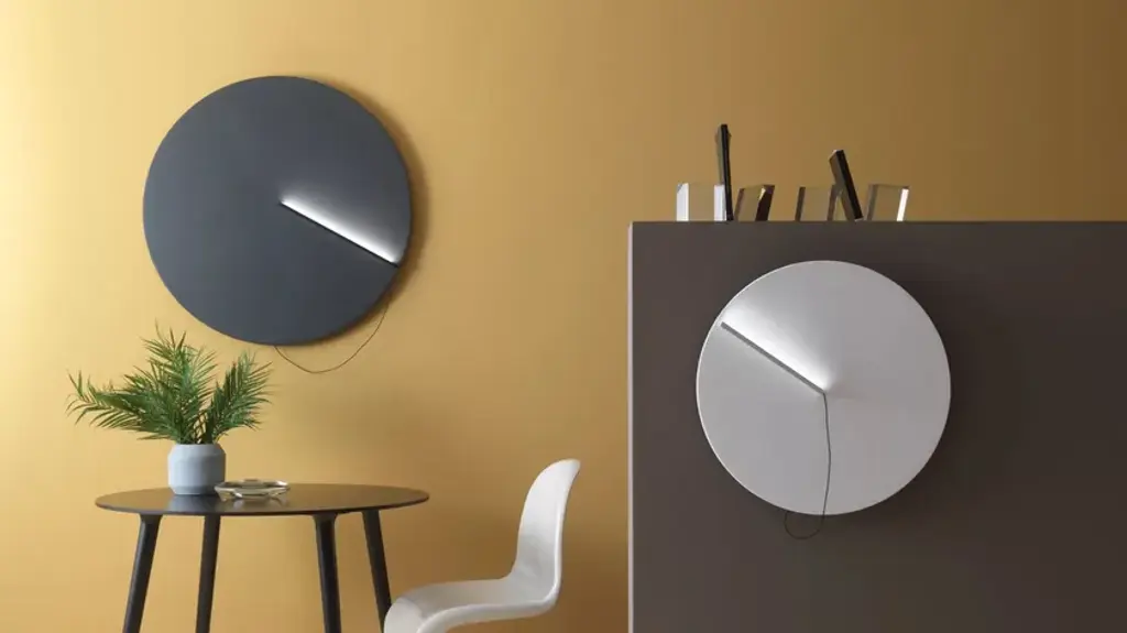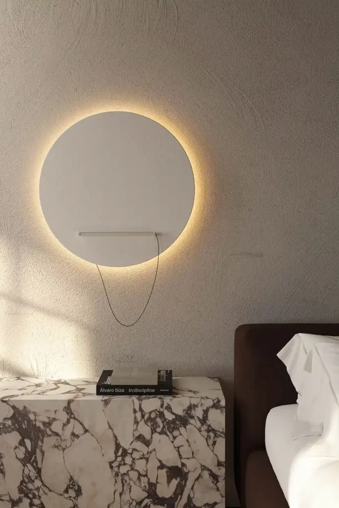 MERIDIUM is a circular wall lamp made for metal.t's about of a collection of lamps inspired by ancient sundials: the solar clock reappears as a lighting object for interior. The new context subverts the relationship between shadow and light: the dial turns into a disk and the gnomon gives way to a metal profile, which itself becomes a light vector. The end-user is becoming master and creator of his own lamp, moving the magnetic light source at will to direct the flow and create ever-changing light and shade effects on the surface of the lamp. Meridium is also available in the Blackboard finish, which can be written with normal chalks.Light Source:-LED 2W + 16W 280Lm + 1287lm 3000k-LED 3W + 26W 330Lm + 2149lm 3000k-LED 4W + 32W 420Lm+ 2574lm 3000k-LED 8W + 58W 750Lm + 3970lm 3000k-LED 10W + 75W 950Lm + 6000lm 3000kDimming:-PUSHON/OFF power supply included in the deviceCable colour:-Black