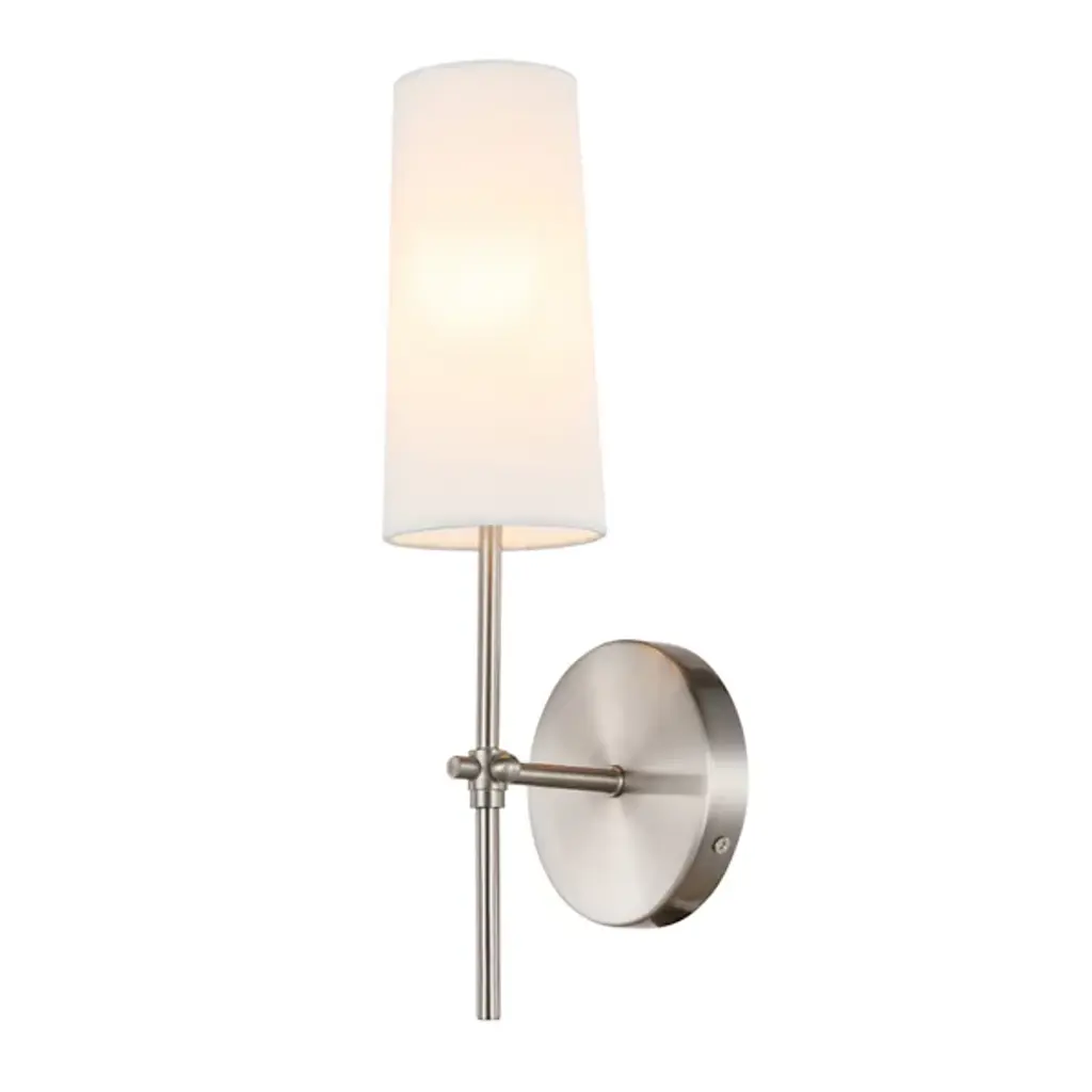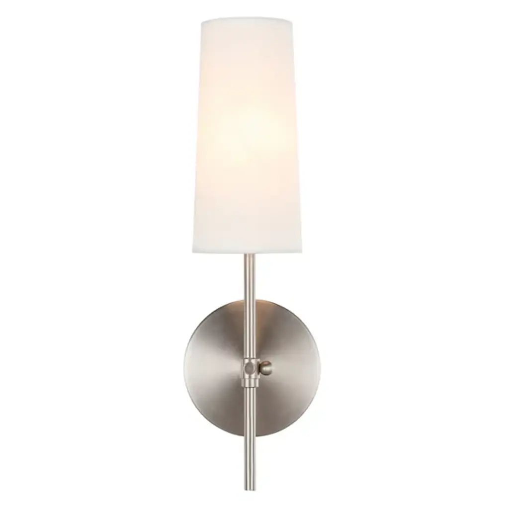 The Merlon Wall Sconce from Alder & Ore epitomes transitional flair and minimalistic elegance. This light fixture boasts a linear framework that is crafted meticulously. Merlon features a thoughtfully designed round backplate that provides a secure anchor for the fixture. The linear framework accentuates the linen shade and creates an understated yet impactful presence on your wall. Illuminate your space with the gentle glow of its LED that is dimmable using a separately sold ELV dimmer.