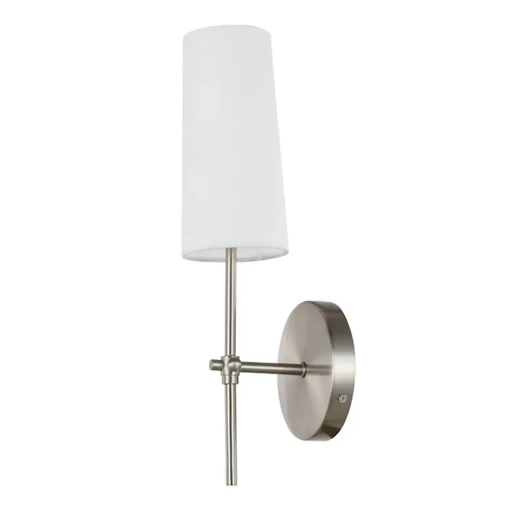 The Merlon Wall Sconce from Alder & Ore epitomes transitional flair and minimalistic elegance. This light fixture boasts a linear framework that is crafted meticulously. Merlon features a thoughtfully designed round backplate that provides a secure anchor for the fixture. The linear framework accentuates the linen shade and creates an understated yet impactful presence on your wall. Illuminate your space with the gentle glow of its LED that is dimmable using a separately sold ELV dimmer.