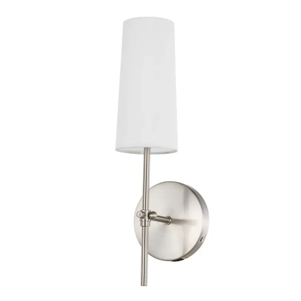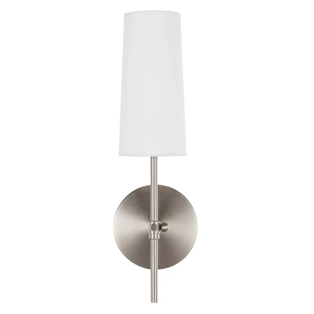 The Merlon Wall Sconce from Alder & Ore epitomes transitional flair and minimalistic elegance. This light fixture boasts a linear framework that is crafted meticulously. Merlon features a thoughtfully designed round backplate that provides a secure anchor for the fixture. The linear framework accentuates the linen shade and creates an understated yet impactful presence on your wall. Illuminate your space with the gentle glow of its LED that is dimmable using a separately sold ELV dimmer.