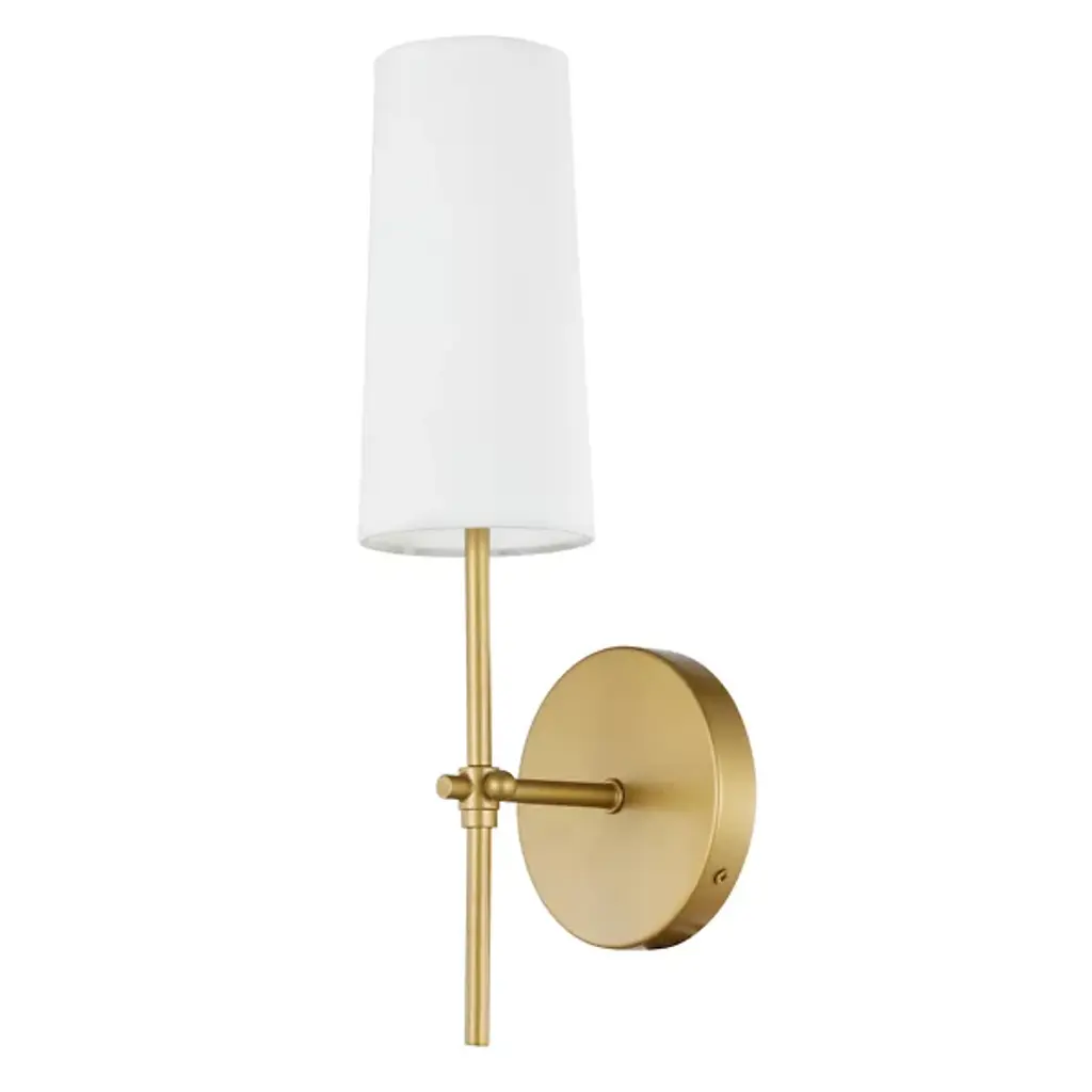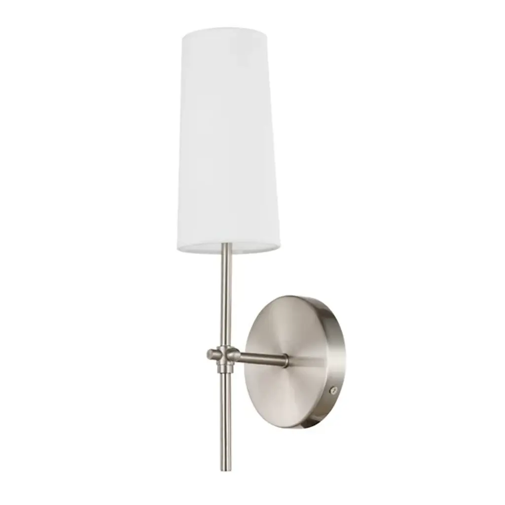 The Merlon Wall Sconce from Alder & Ore epitomes transitional flair and minimalistic elegance. This light fixture boasts a linear framework that is crafted meticulously. Merlon features a thoughtfully designed round backplate that provides a secure anchor for the fixture. The linear framework accentuates the linen shade and creates an understated yet impactful presence on your wall. Illuminate your space with the gentle glow of its LED that is dimmable using a separately sold ELV dimmer.
