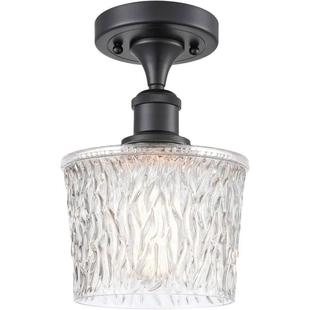 Single Surface Mount - Mesa-Matte Black-Smoke Blown Glass-LED - 2700K