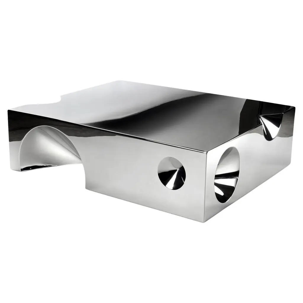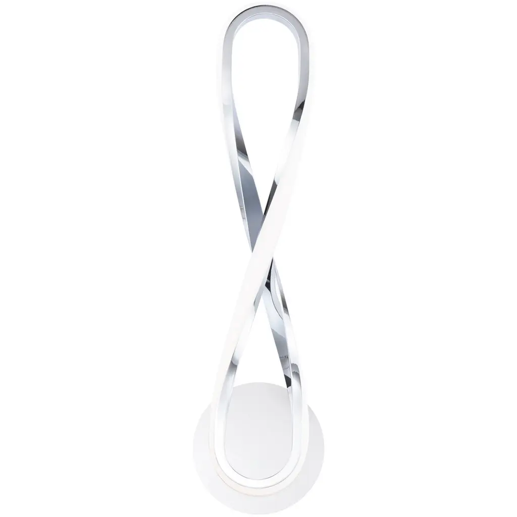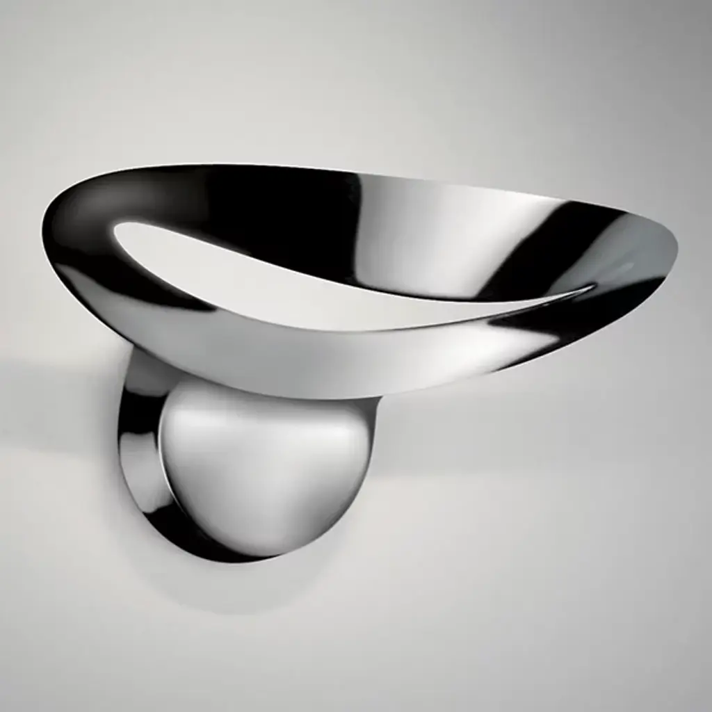 A sinuous linear form masks the light source it contains, emitting a soft light upwards. Die-cast aluminum body available painted white or in polished aluminum. Features