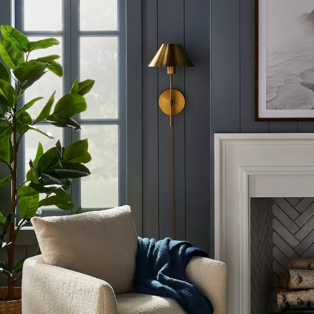 Metal Sconce Wall Light (Includes Led Light Bulb) Brass - Threshold™ Designed With Studio Mcgee: Dimmable, Plug-in, Etl Listed