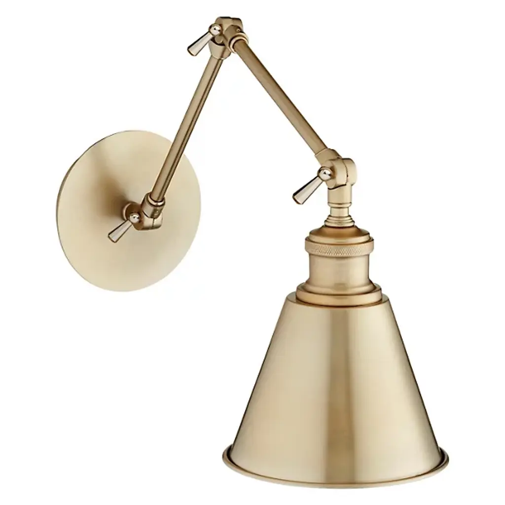 Nothing says multi-directional lighting more than the swing-arm design. Accentuate the versatility of your home with the shifting transitional personality of the Metal Wall Sconce from Quorum International. It’s a piece oozing with charm, striking a pose with the tightening of its lovely accented joints. A cone lamp shade neatly conceals its bulb; its direction can be aimed down at a surface below or shifted up in a regal pose. Turn it on an instantly notice your room feel more cohesive as its light highlights furnishings or brings forth a sumptuous ambient glow.