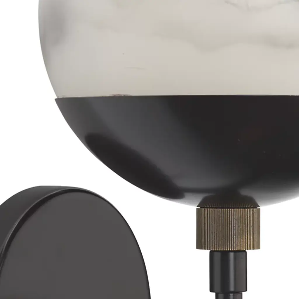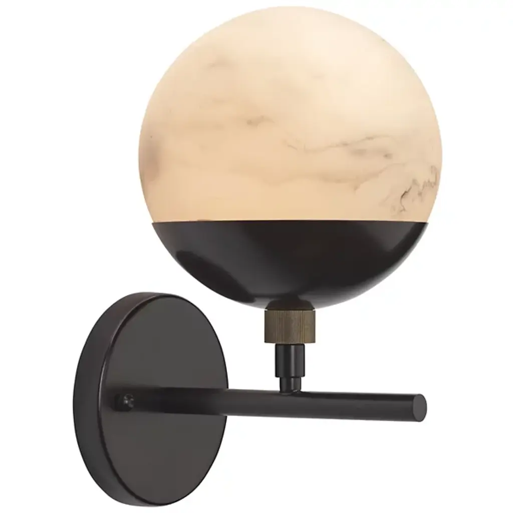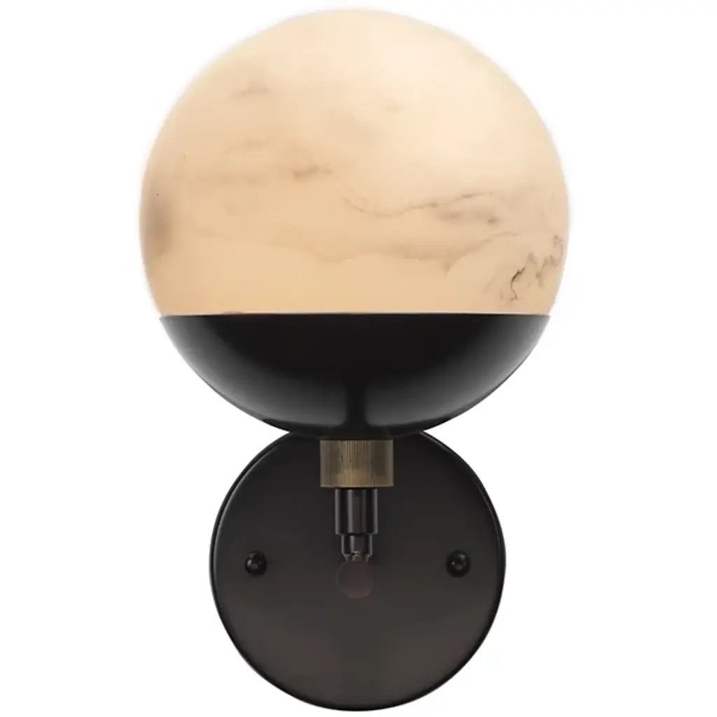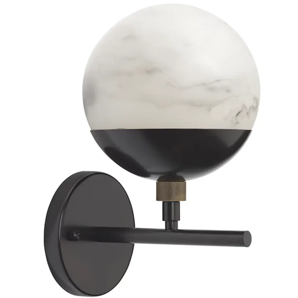 The Metro Wall Sconce from Jamie Young Co. extends a natural warmth with a retro character. Spherical faux alabaster shades that soften and diffuse the bulbs within are paired with gleaming metal bases and hardware in these clean-surfaced sconces. The mid-century inspiration is injected with a decidedly urban zest, while the delicate swirl patterns and veining of natural stone in each shade are recreated carefully by hand from high-quality resin unique to each fixture.