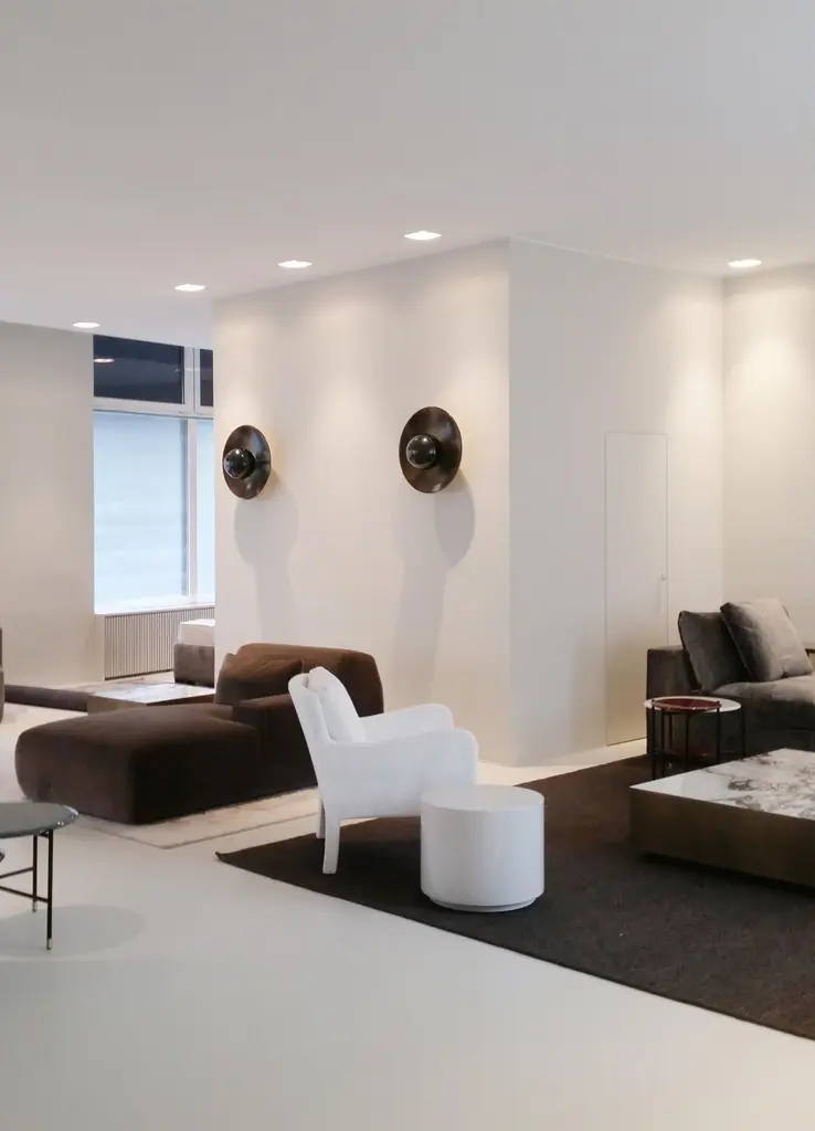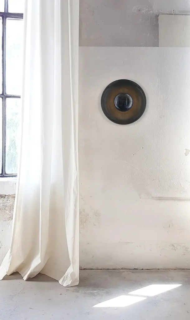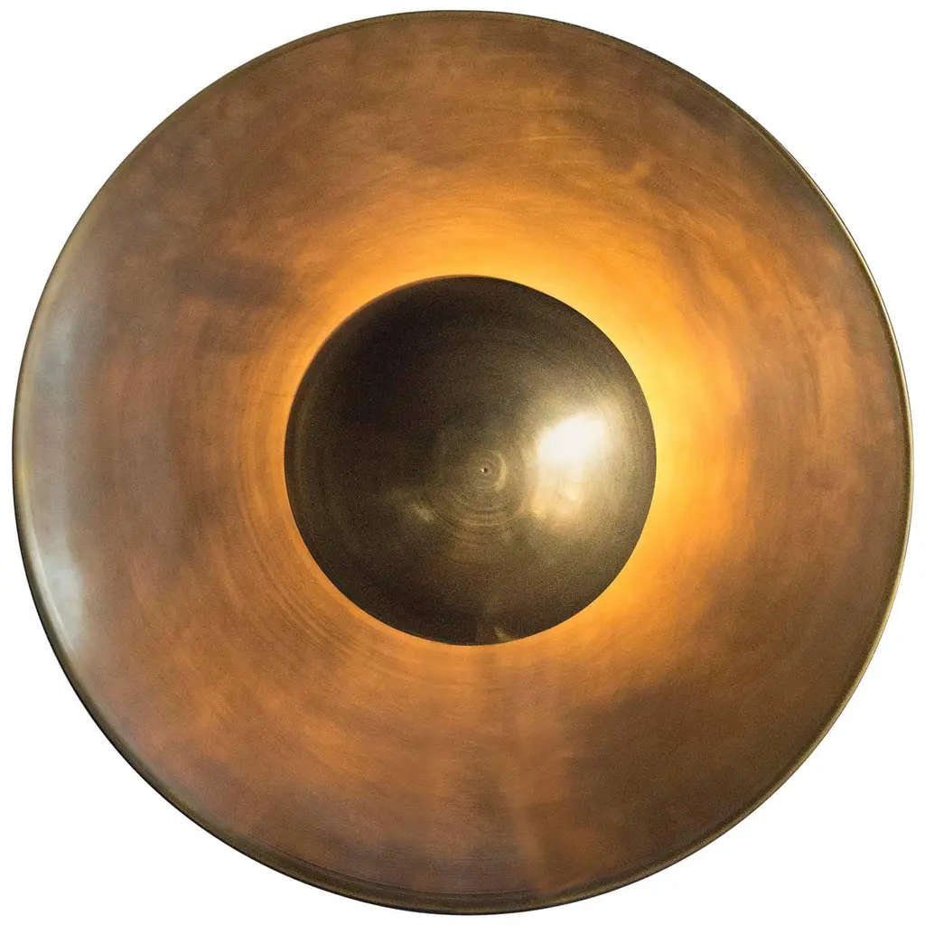 Metropolis Eclipse Brass and Glass Sculptural Wall Sconce by Jan GarncarekDimensions: 36 x 36 x 18 cmAlso available in 52 cm diameter.Material: BrassHandcrafted by Jan Garncarek.Signed and NumberedInformation: weight: 4 kg / 9 lbvoltage: 120V, 240Vlamping: 3 x E27, 60W, 50-60Hzlumens:300 Imkcolortemperature:2700 Ktightness class: IP 21certificates: CE approved, RoHSSpun metal sheet, rounded and swollen forms. Light emanating from within the sphere and reflecting in the plate. Giving off a fiery light. These are perfect shapes that bring out the beauty of the brass. Captured in a minimalist elegant form. The shape is the result of a long process of searching for the perfect proportions. The lamp gives a soft decorative light.Jan Garncarek is an important contemporary designer, graduated from the Academy of Fine Arts in Warsaw. he gained extra qualifications at Politecnico di Milano. He has acquired professional experience in the Design Society. he took part in projects such as: design of visual information for the Museum of the History of Polish Jews, interior design project of the Polish Cultural Institute in Tel Aviv, space arrangement of the Presidential Palace of Poland, interior design project of the Polish Embassy in Berlin and Skopje, Modernization of the Malachowski's Square in Warsaw. His process of designing is the state of researching, discovering and being curious of the world, making insightful observations and drawing sensible conclusions.All our lamps can be wired according to each country. If sold to the USA it will be wired for the USA for instance.