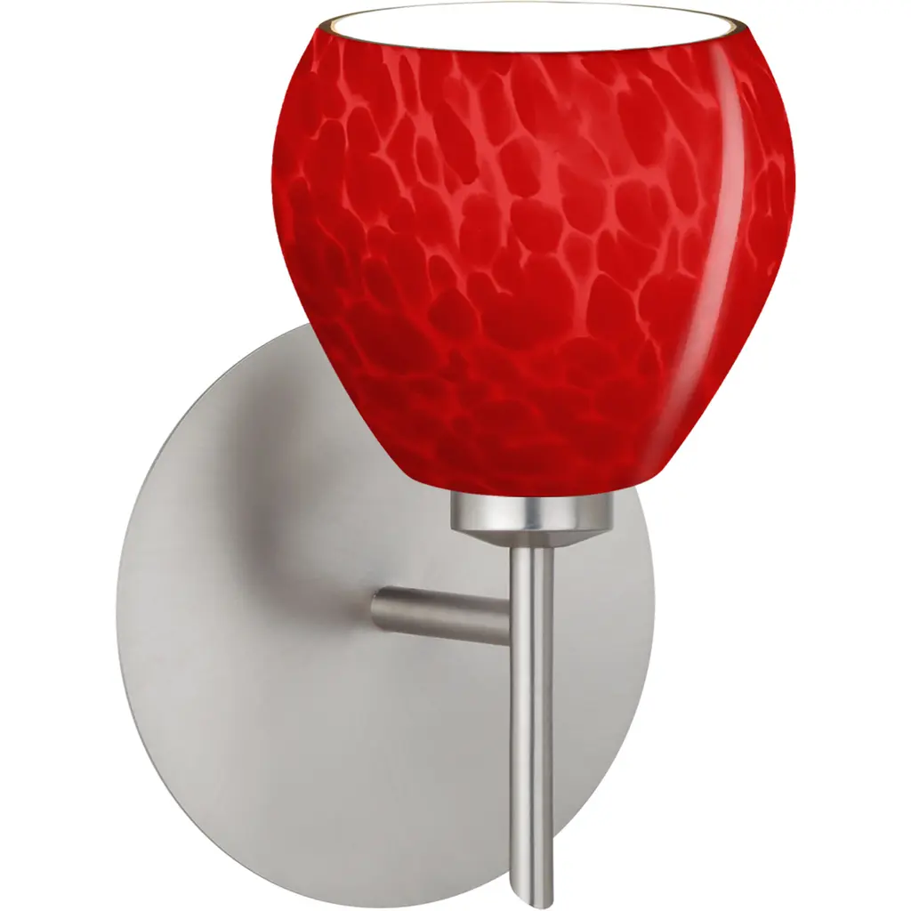 Mia has a classical bell shape that complements aesthetic, while also built for optimal illumination. Our Red Cloud glass is full of floating, splashes of red tones over cased red that resembles a watercolor painting when illuminated. This combination of color is crisp and timeless. This décor is created by rolling molten glass in small bits of red hues called frit. The result is a multi-layered blown glass, where frit color is nestled between an opal inner layer and a clear glossy outer layer. The handcrafted touch of a skilled artisan, utilizing century-old techniques passed down from generation to generation, creates variations in color and design that are to be appreciated. The mini sconce is equipped with a decorative lampholder mounted to either a low profile round or square canopy. These stylish and functional luminaries are offered in a beautiful brushed Bronze finish.