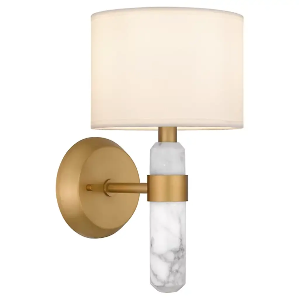 Mia swing arm sconce combines alabaster and natural brass for a femininely sophisticated light. The scalloped edge of the alabaster backplate is soft and subtle, and the arm's clean lines and long tail provide structure. Install this classic sconce to either side of a bed to provide adjustable task lighting.