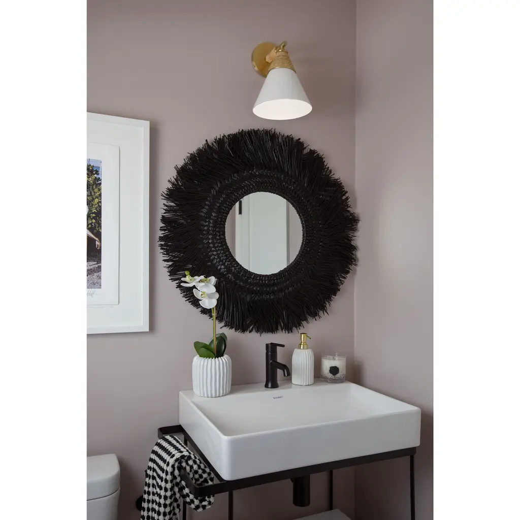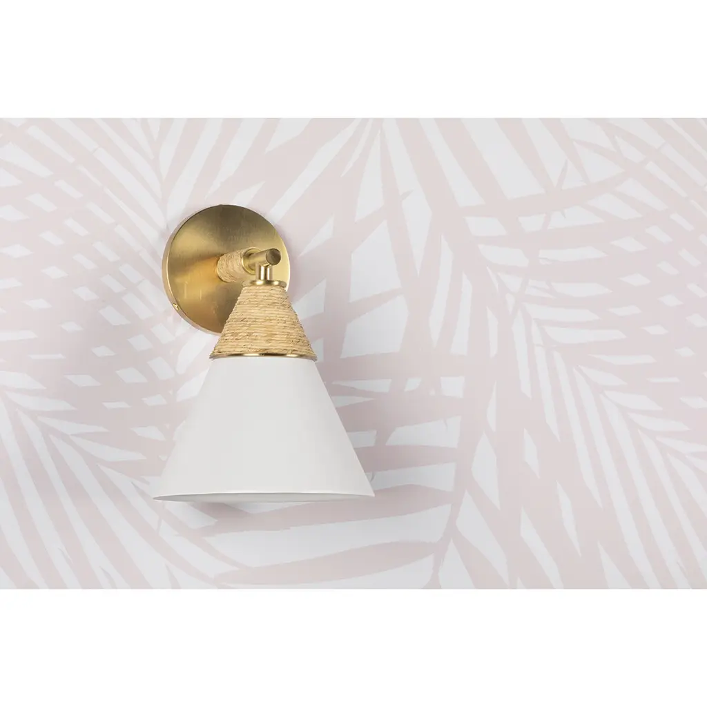 A classic cone shape with coastal flair, Mica features a rattan-wrapped, textured white shade accented by beautiful Aged Brass for a casual yet sophisticated aesthetic. Add personality to a powder room with sconces, or highlight the heart of the home with a pair of pendants over your kitchen island. Part of our Megan Molten x Mitzi Tastemakers collection.